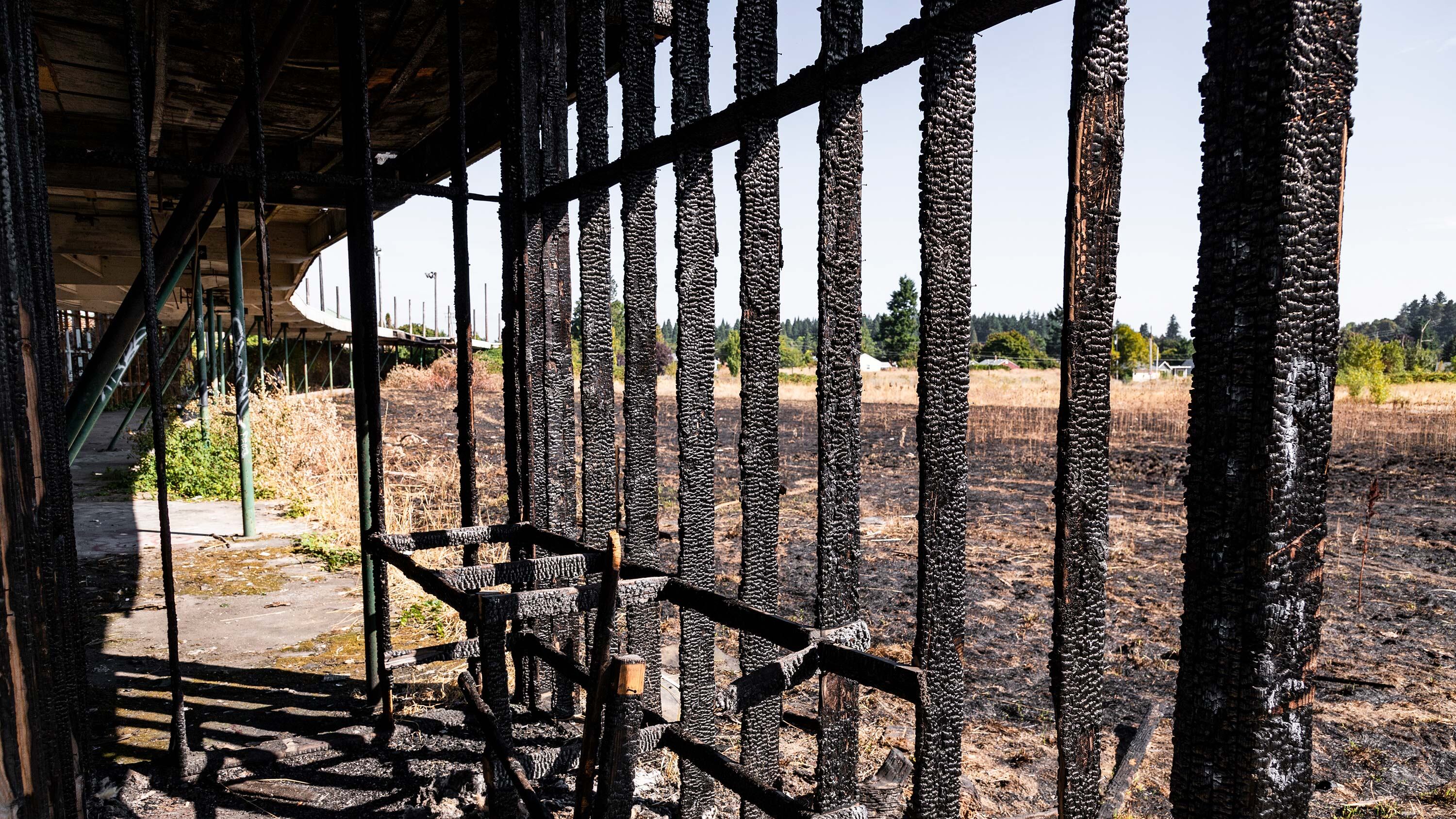 On Sept. 1, nearly a week after the field fire that left residential and business buildings in ruins, police say Singerhouse set fires at two separate dumpsters: one at the Concordia University campus and one at a Michael's craft store, both located in Northeast Portland.