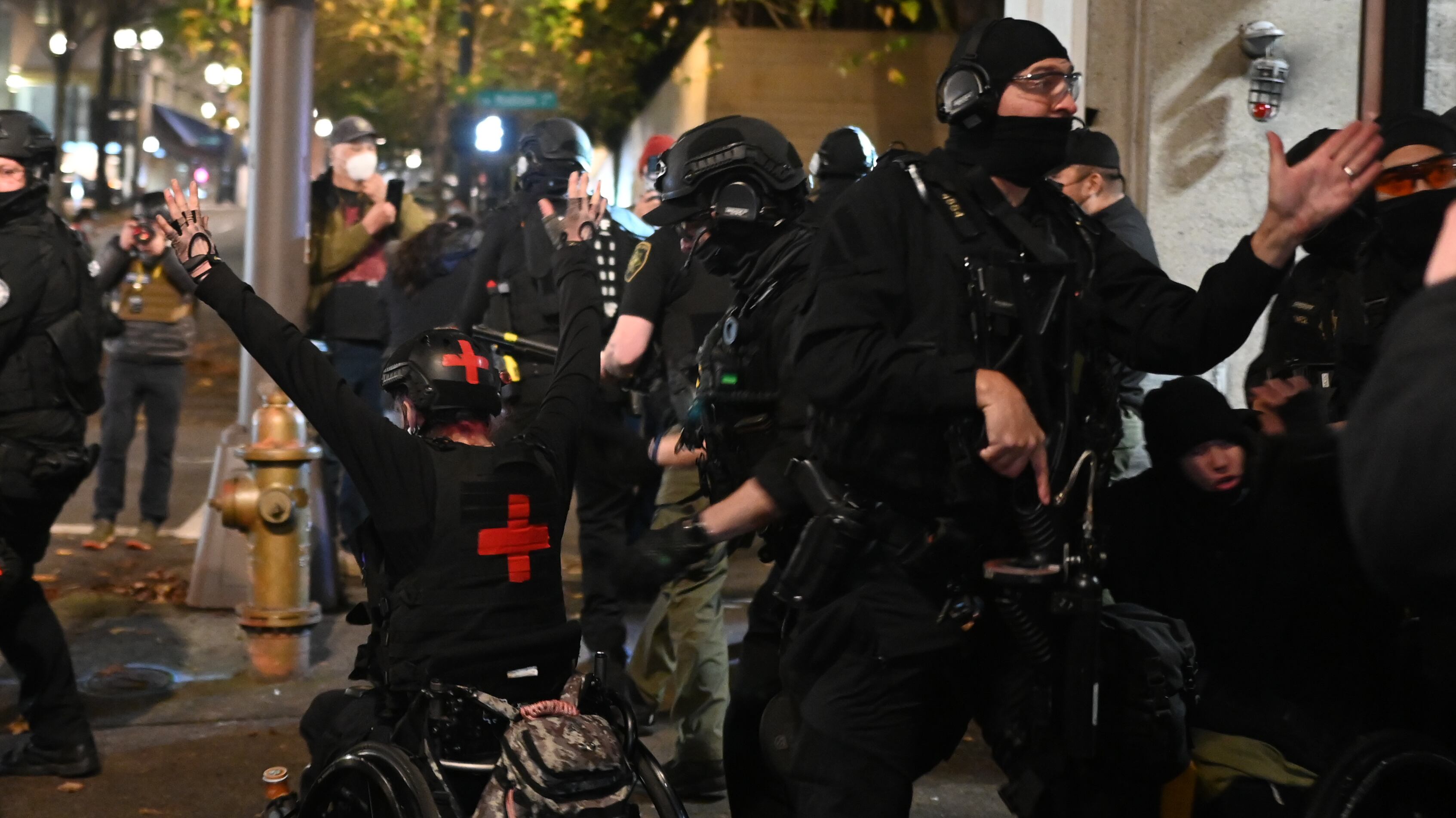 In between, about 150 leftists pelted the Multnomah County Justice Center with eggs and clashed with riot police on Nov. 19.