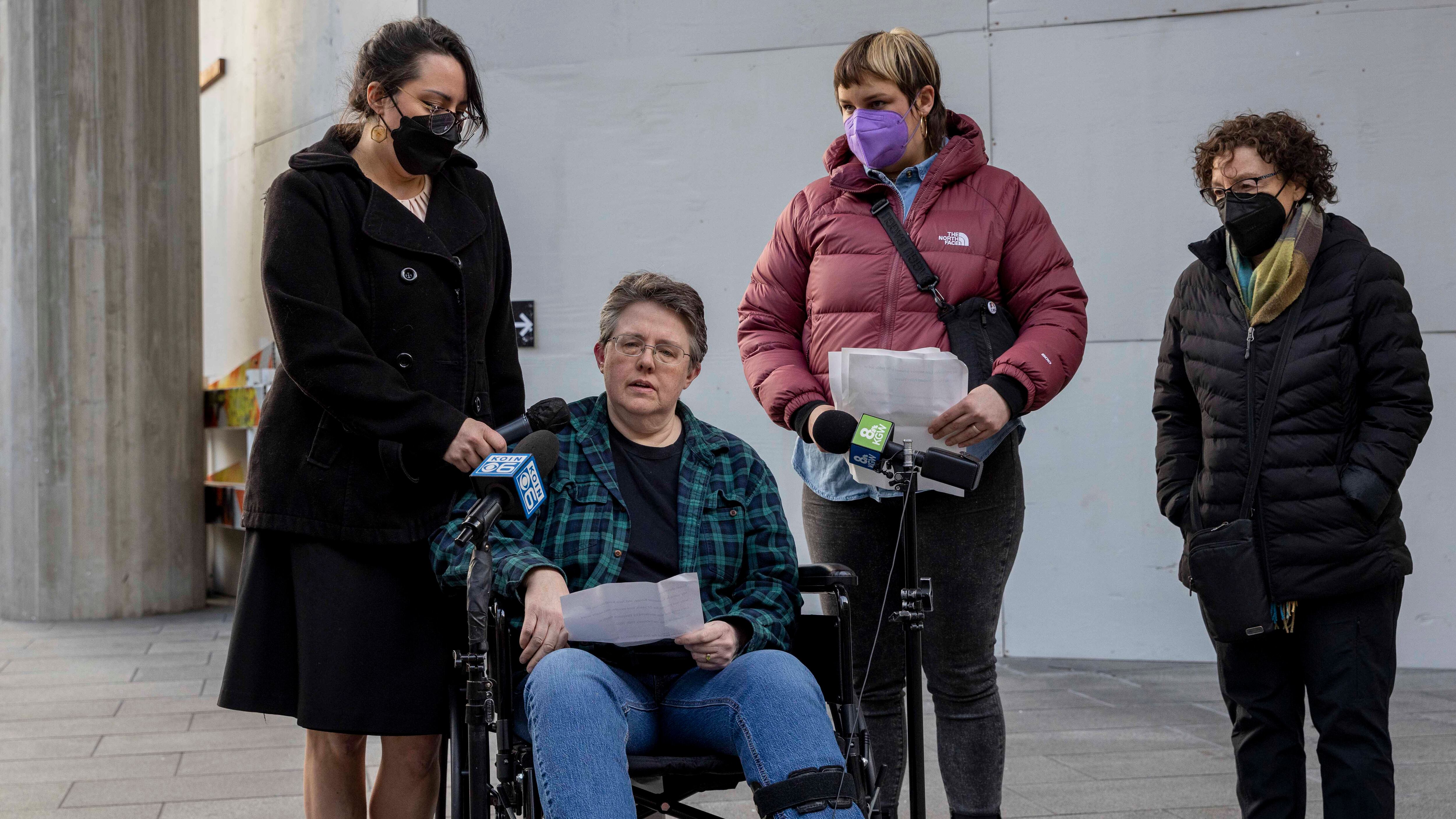 Benjamin J. Smith, haggard, in a wheelchair and wearing prison scrubs, sat before Judge Christopher Marshall in Multnomah County Circuit Court today and pleaded guilty to murdering June Knightly, 60, as she helped direct traffic around a protest march. He also pleaded guilty to eight other violent, armed felonies that night in February 2022.