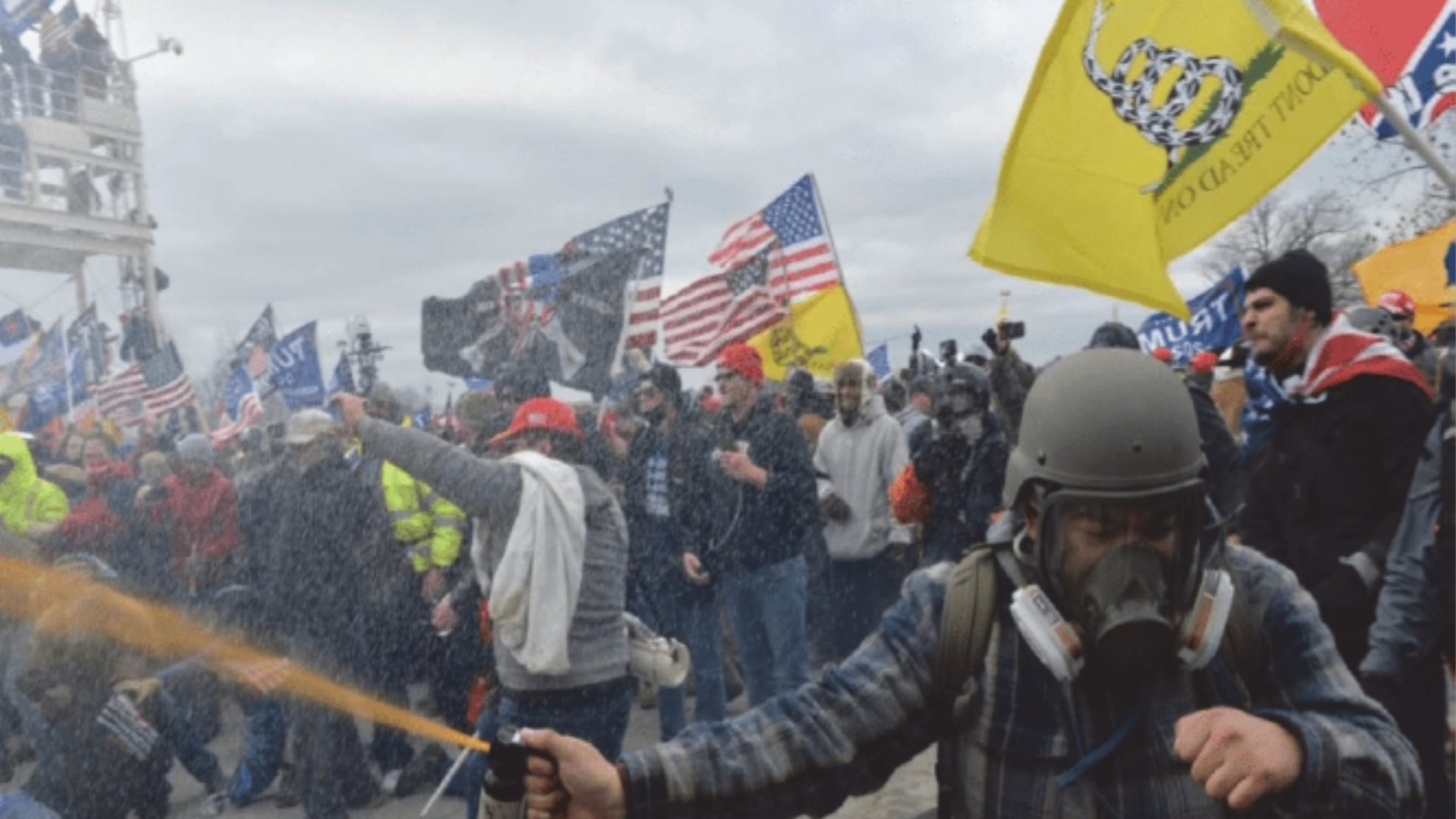 Oliva-Lopez was captured on video climbing over barricades outside the Capitol building on Jan. 6, 2021, wearing a gas mask and then spraying police officers with what appeared to be bear spray. He was later the subject of an FBI “be on the lookout” bulletin, as well as a campaign ad for President Joe Biden (in which he was used as an exhibit of the threat posed to democracy).