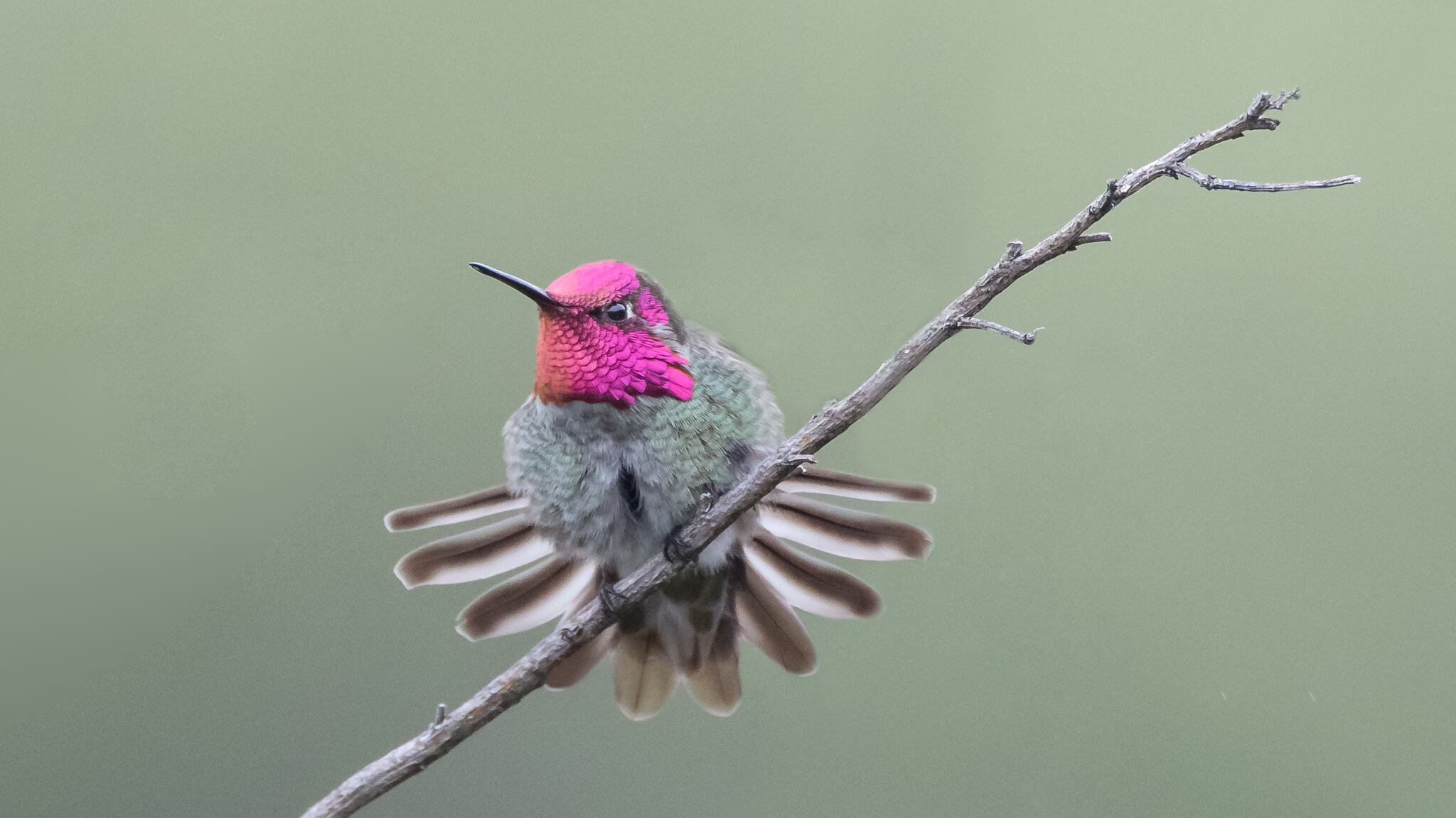 What you’re seeing is probably the species known as Anna’s hummingbird, and your climate fears may be partially allayed when you learn that, unlike every other hummingbird in North America, this one is nonmigratory. Despite their tropical appearance—the males’ faces shine an iridescent fuchsia in the right light—these hardy little bastards butch out the Northwest winter as far north as British Columbia.