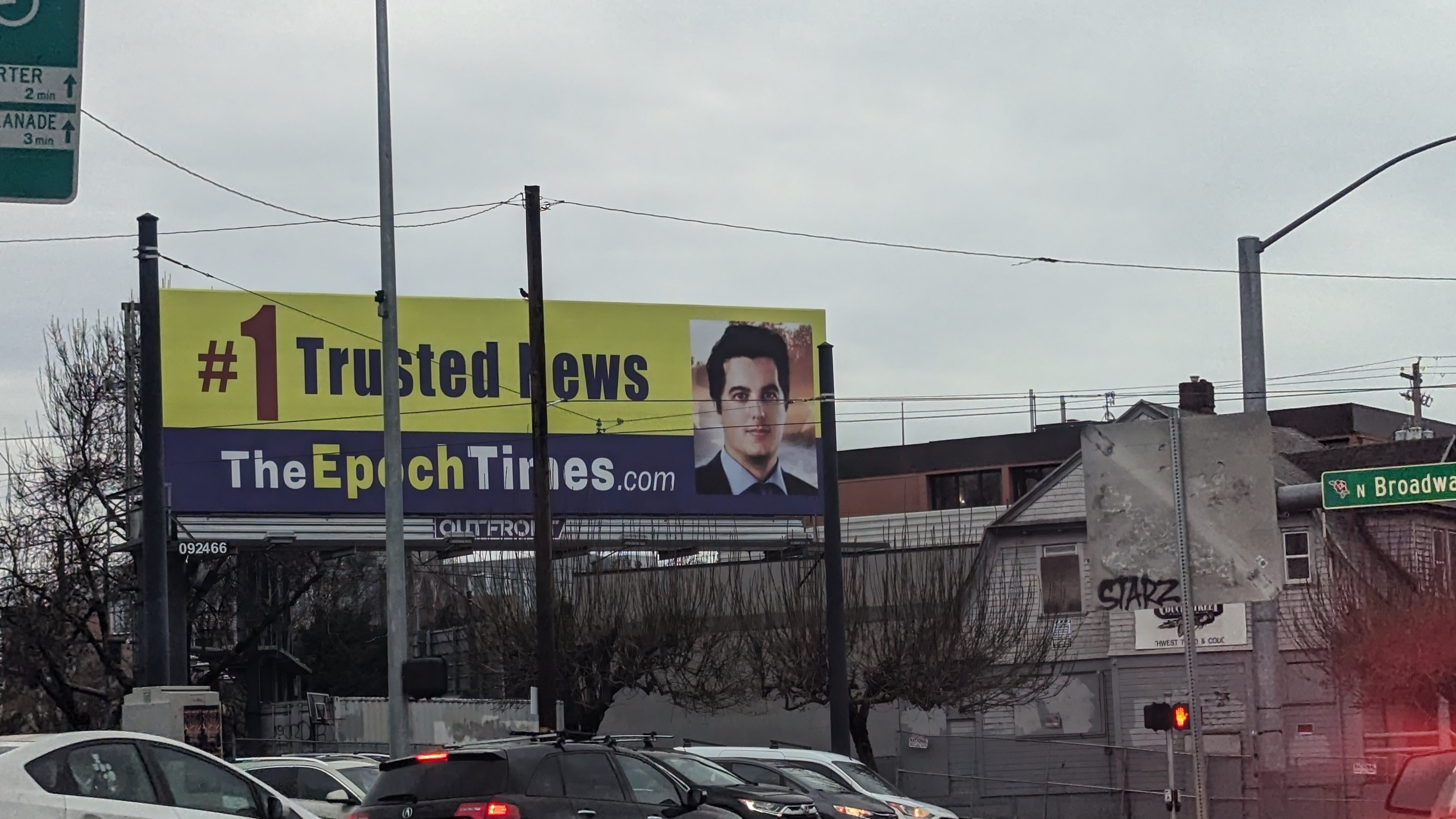 I’ve seen a lot of partisan digital ads for The Epoch Times. Now I see billboards around town advertising The Epoch Times as “#1 Trusted News” here in Portland. Who is behind these billboards, and what is their agenda in Oregon? And who is the low-resolution, vaguely unsettling man featured in these advertisements? —Fascinated by Fake News