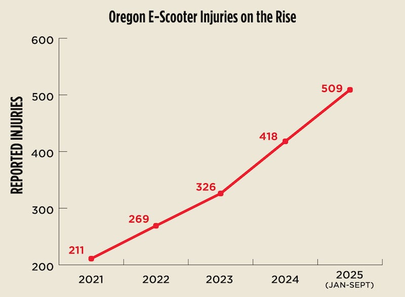 Data released by the Oregon Health Authority this week suggests that Oregonians are getting hurt on electric scooters more every year.