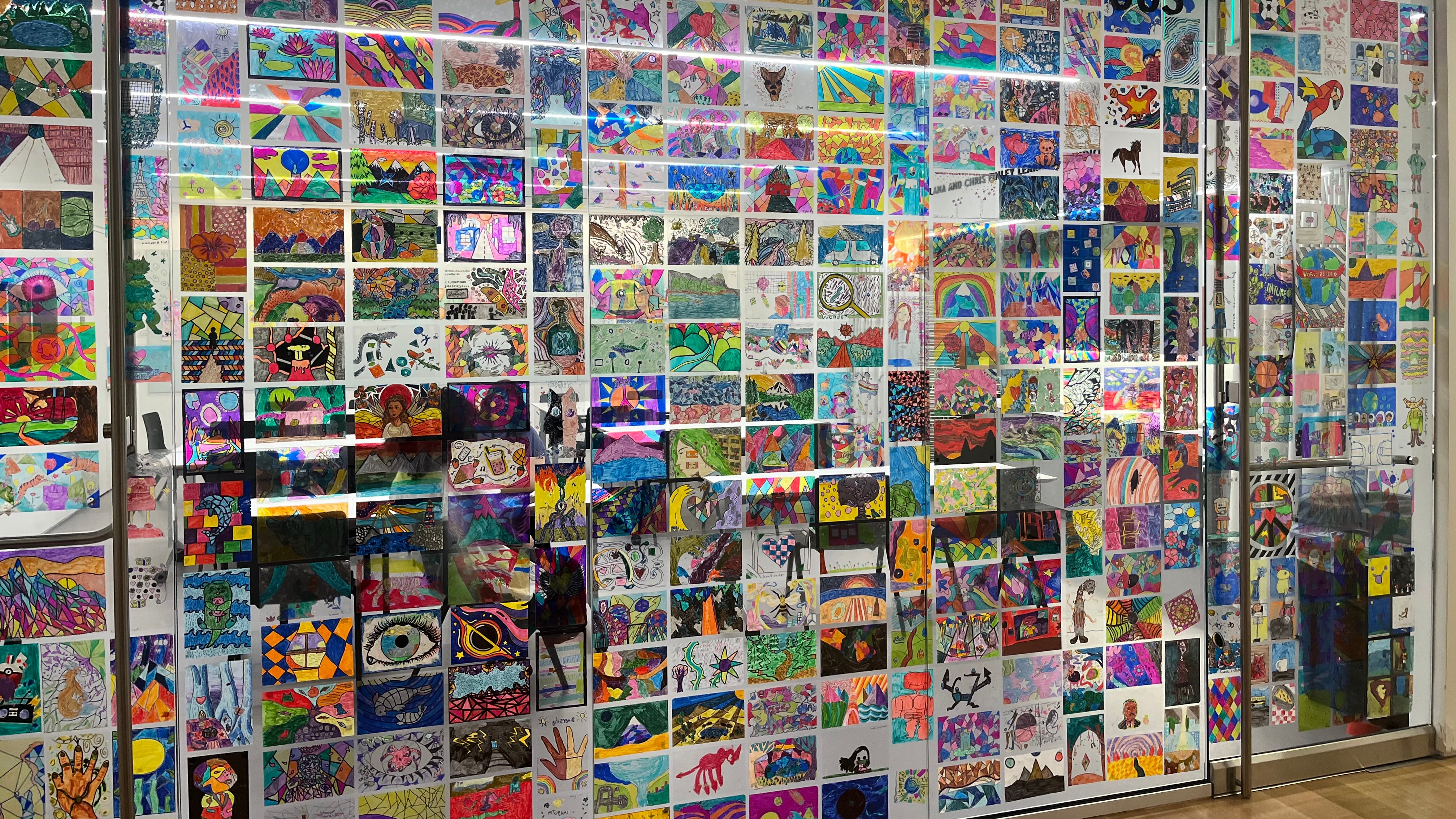 Brayson says the district also works to instill interschool collaboration on a number of performances in HeART of Portland. A large glass panel in the museum’s gallery features a colorful collage of works from across the district’s classrooms, Layson says.