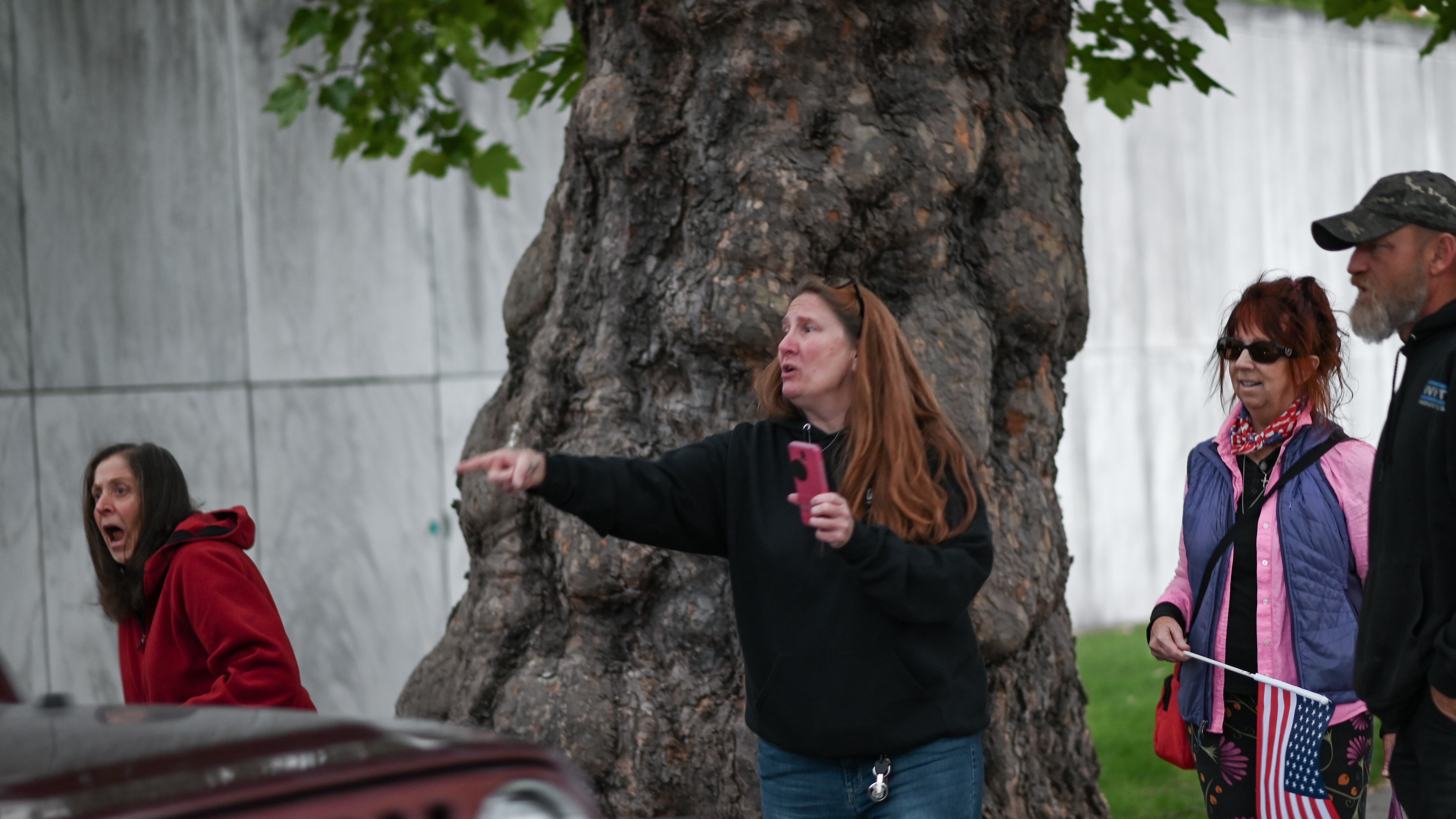 After the session ended, the small crowd moved to the back of the Capitol building on Court Street hoping to meet with Nearman himself. Instead, most verbally accosted legislators who voted for Rep. Nearman’s expulsion. The crowd split in two, targeting both exits of the Capitol building parking structure exits. “Treason! Traitors!” the crowd yelled as state legislators exited the building in their vehicles.