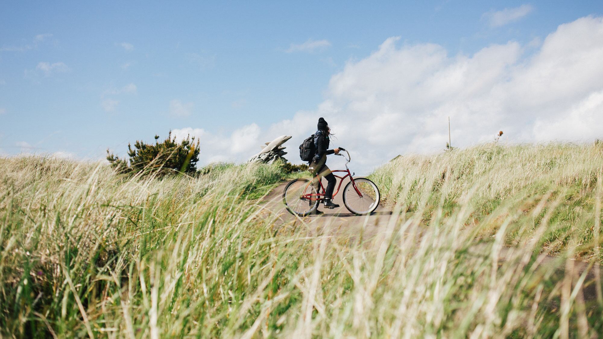 Walk toward the beach on the lower peninsula, and you'll intersect with a paved path through the dunes. It's smooth enough to Rollerblade, though most folks you'll see are biking or walking.