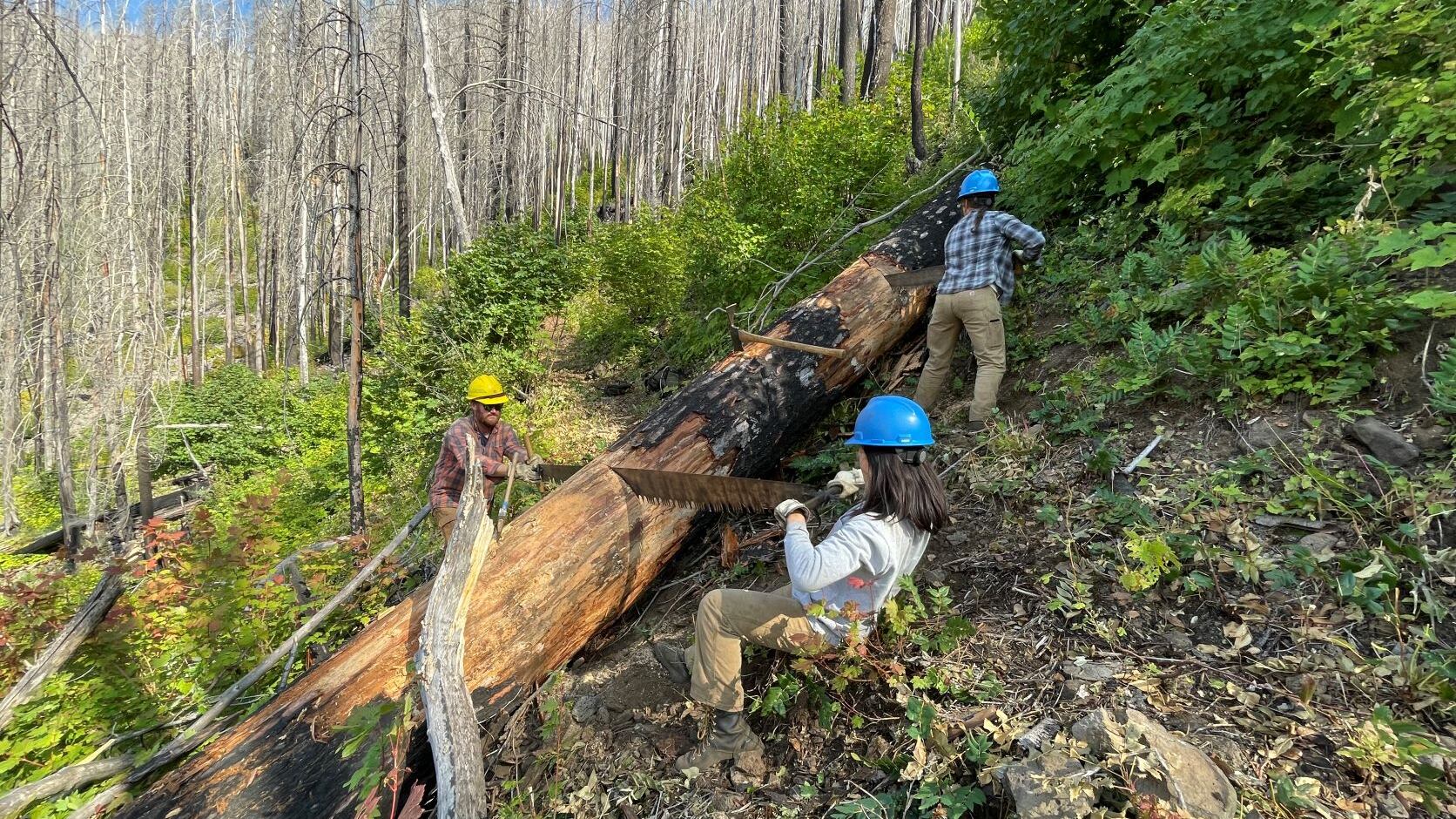 The two trails were restored thanks to the hard work of people in multiple agencies, including the Forest Service, Northwest Youth Corps, American Conservation Experience, and the Trailkeepers of Oregon, who alone dedicated more than 2,000 hours to rehabilitating the land. That often meant digging through mudslides, casting aside fallen rocks, and using crosscut saws to remove hundreds of burned and windfallen trees.