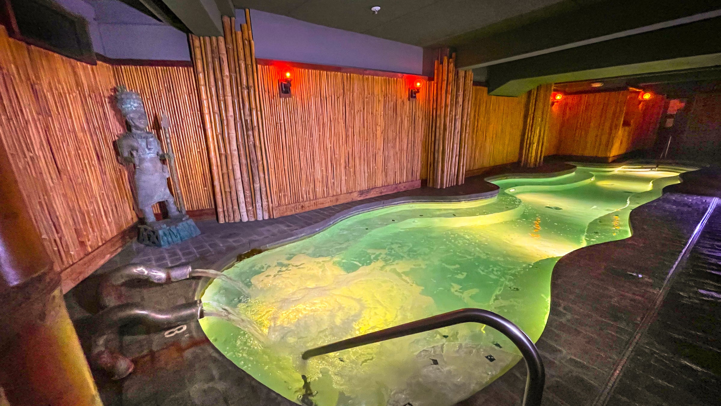 It also brought the outdoors into the basement by lining the walls with bamboo and installing a rain shower, which you can use as a substitute for a cold plunge by blasting frigid water instead of warm. The only natural light filters in through clouded glass tiles above the far portion of the pool, which are embedded in the sidewalk. It’s the best section of the oversized tub, because that’s also the location of two metal pipes that provide a gentle water massage if you stand right next to them. AP.