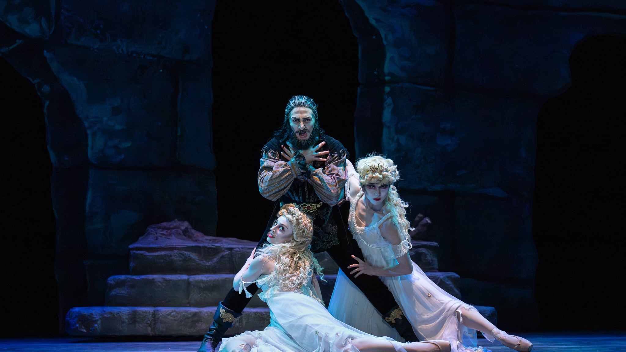 Act I could easily be called “Vampire Foreplay,” Act II is “Virgin Villager Kidnapped,” and Act III is “Vampire Foreplay (with Villager).” That’s it! That’s the whole plot! (Attendees with early bedtimes and/or a lukewarm affection for the classical arts: Don’t panic when you open your playbill and see that there are three acts plus two 20-minute intermissions. The acts are 30 minutes each, so it’s a manageable amount of ballet.)