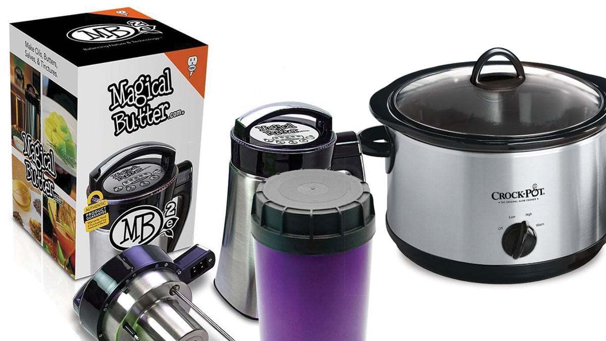 If you make edibles, tinctures or salves on a regular basis, the MagicalButter machine is an investment I can't recommend enough. But if you're a first-timer and don't want to sink the cash in one quite yet, you can manage an actionable infusion using a Crock-Pot or slow cooker instead of the MBM. When using a Crock-Pot, you'll need to grind your flower ahead of time. After making a fine chaff of your decarbed weed, combine your liquefied coconut oil and powdered sunflower lecithin. Stir until the powder dissolves. Next, add your ground, decarboxylated flower to the oil-lecithin mixture. Turn on your Crock-Pot and monitor the temperature with a meat thermometer. Stir occasionally and, after 2 hours at 160 F, strain out the plant material using cheesecloth or an extraction mesh.