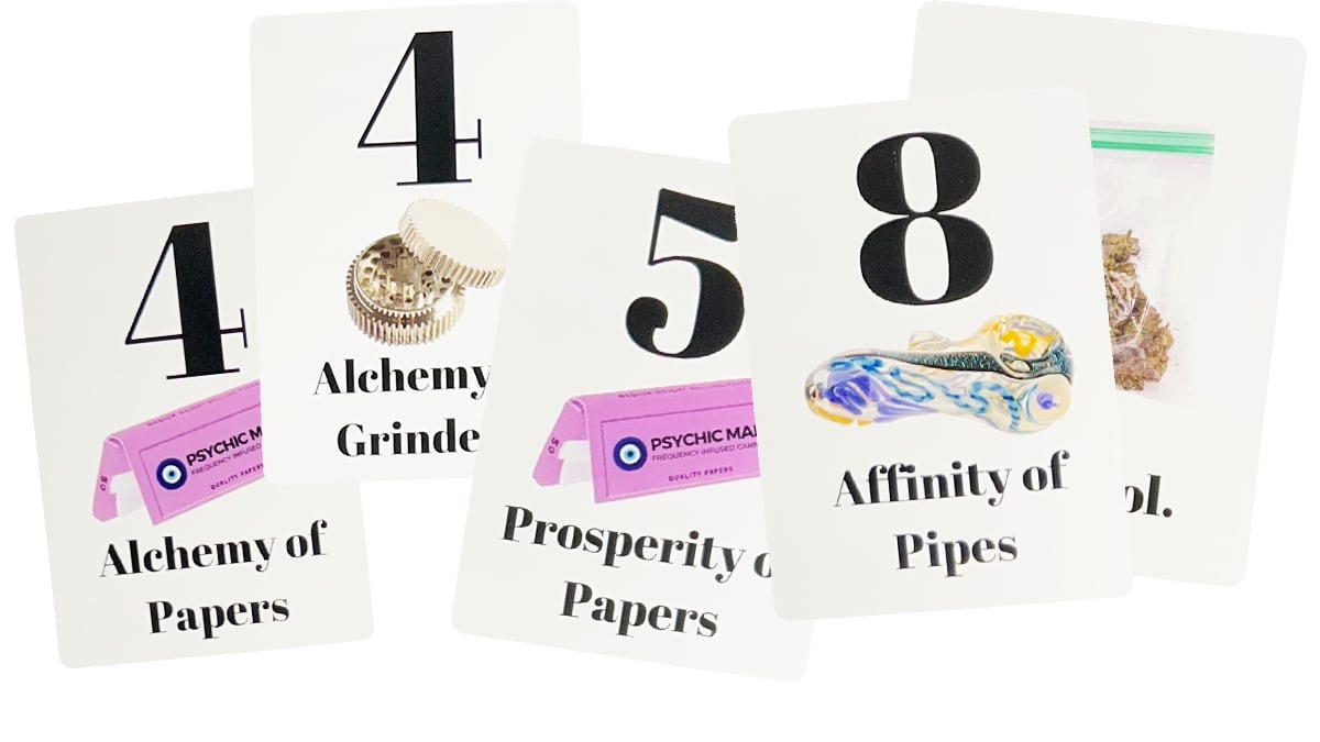 Although Psychic Mary’s Minor Arcana rely on the Rider-Waite structure, they’re much more complex in their cannabis user-oriented reimagining. Rather than suits of Staffs, Swords, Coins and Cups, Psychic Mary’s Minor Arcana are organized by Grinders, Lighters, Pipes and Papers.
