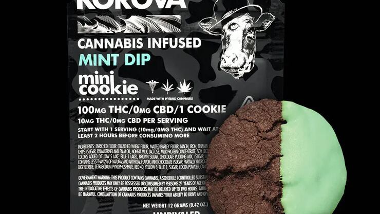 Korova creates an effigy to the classic black-and-white cookie via this potent 50 mg mint chip-flecked cocoa confection, half dipped in muted green mint chocolate. Like black-and-white cookies, Korova’s Mint Dip Mini is festive, but in a way that works as well for Christmas as it does for Meemaw’s birthday. This hybrid infused mini-biscuit (about the size of a votive candle) has a stiff, biscotti-esque texture that rejects portioning but demands dunking, so consider it a varsity-stoner-only single serving—best furnished alongside a mug of hot chocolate, creamy coffee or fancy 2% dippin’ milk.