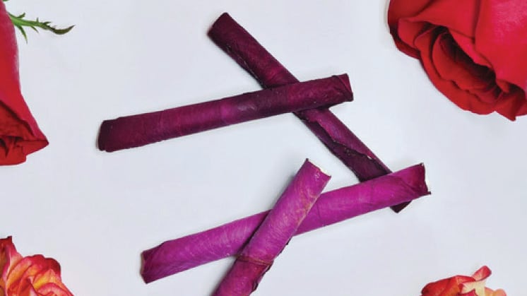 Rose petal wraps aren’t necessarily new to the chat, but they aren’t nearly as easily found as hemp, tobacco or basic rolling papers. Yet for generations, rose petals have been used in all manner of botanical smoking blends, offering a number of holistic health benefits, including reported relief from anxiety, insomnia and even low libido. Furthermore, cured rose petals are much easier on the lungs than paper, tobacco or hemp rolls, making therapeutic rose-wrap smoking an option for patients otherwise averse to ultra-processed wrap options.
