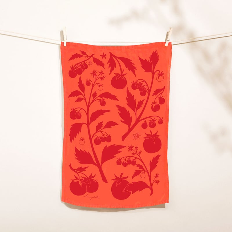 Screen-printed on heirloom flax linen, the Tomato Tea Towel blends beauty and utility. Soft yet sturdy, it brightens everyday kitchen rituals. Perfect for drying dishes or wrapping fresh bread, and a thoughtful gift for your favorite home cook.