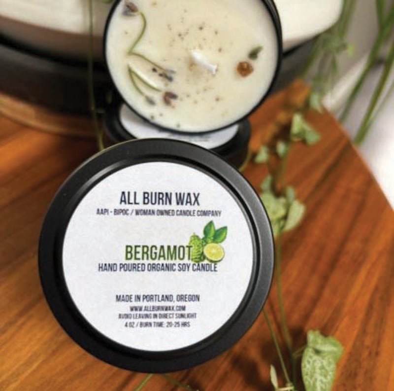 Hand-poured soy candles crafted in Portland by All Burn Wax. Topped with dried botanicals and crystals. Each candle combines artistry, sustainability, and cozy scent blends inspired by the Pacific Northwest.