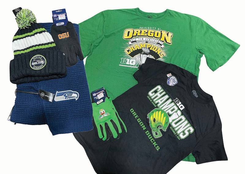 Score budget-friendly gifts: Ducks tees $3.99, Seahawks hats and scarves $4.99, and Ducks or Beavers gloves $4.99 a pair. With tons of gifts under $9.99 and furniture ready for holiday hosting, City Liquidators has you covered. Shop local! Open seven days a week, 9am–6pm.