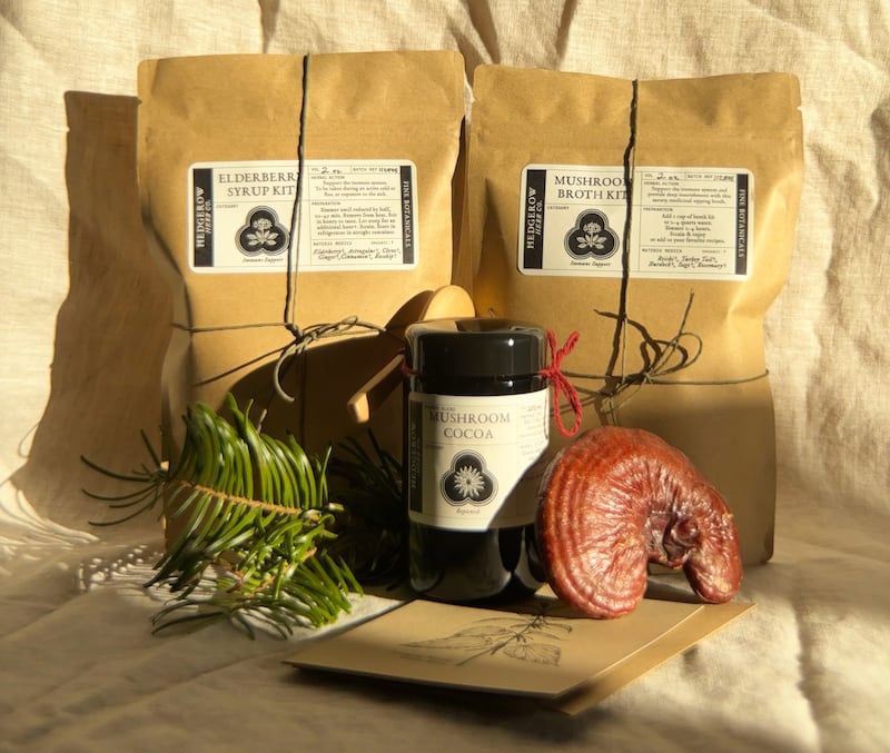 Give the gift of herb crafting and immune support to a loved one with our limited edition winter holiday set. Wrapped in a silk ribbon and a block printed muslin bag, your bundle comes ready to set under your tree!