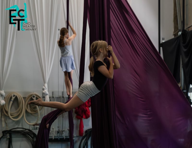 Join Echo Theater for an action-packed week of circus, theater, and aerial arts. Students explore single point trapeze, aerial silks, tumbling, partner acrobatics, juggling, balancing, creative movement, and more in a creative and collaborative environment.