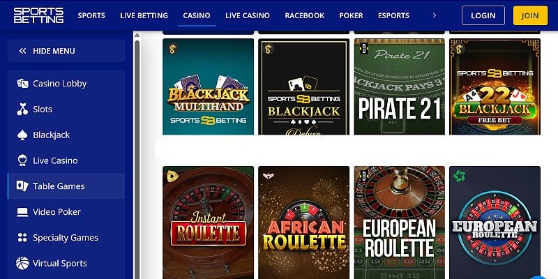 The standout feature of Sportsbetting.ag is its extensive range of table games. With 80 live casino games and over 29 blackjack variations, this gambling site ranks among the best blackjack sites.