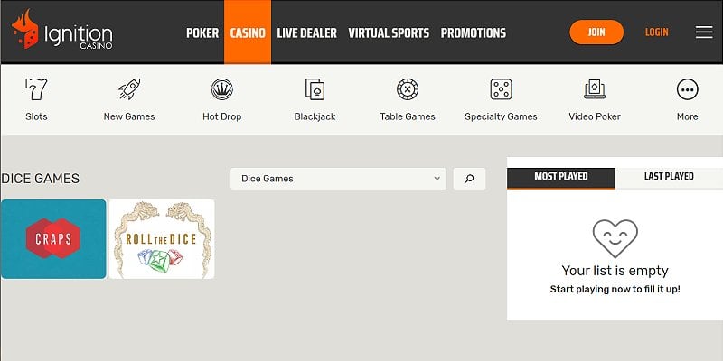 1. Ignition - Best Online Casino Craps Overall