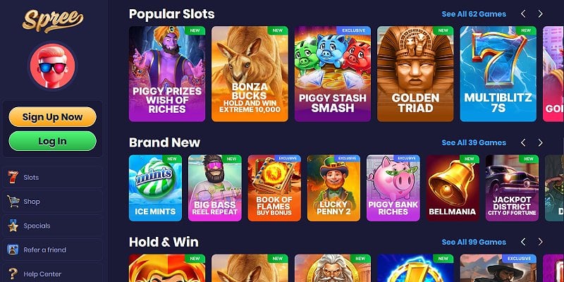 Spree: Get 25,000 Gold Coins and 2.5 Sweeps Coins at signup. Unlock value-packed starter bundles, join weekly tournaments, and spin for jackpots in exclusive Spree slot titles.