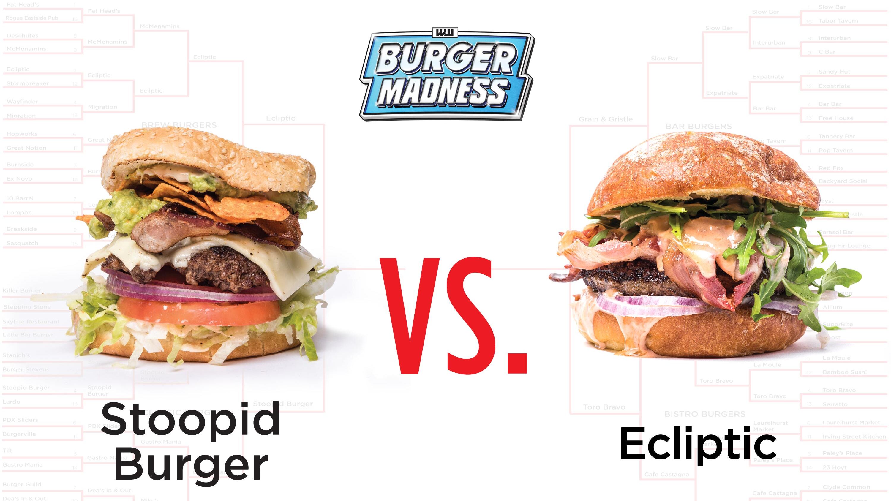 This epic matchup pits the best classic burger, as chosen by writer Sophia June, against the best Brewery Burger, chosen by Martin Cizmar. Seeds don't matter anymore: It's Classic Burger vs. Brewery Burger, Stoopid Burger vs. Ecliptic.
