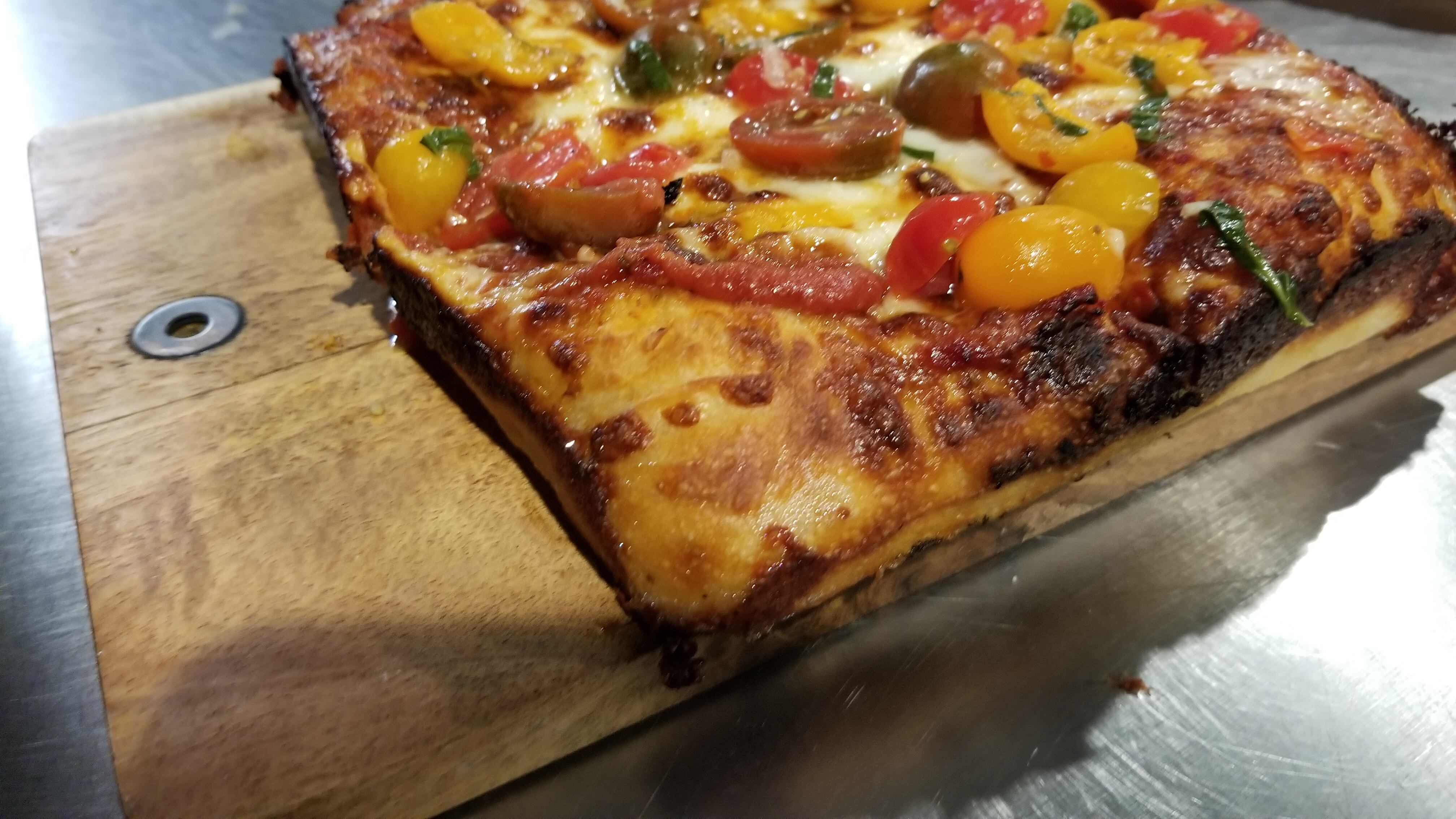 I grew up in Detroit, so those deep-dish pies serve as a guide for what we do at the restaurant. Traditional potato dough, brick cheese and an homage to Little Caesars' own crazy sauce.