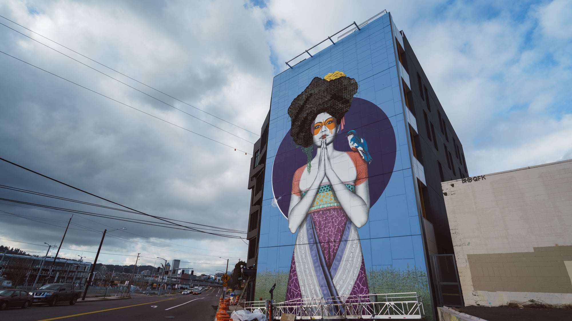 The two-story bar is in a new building at 959 SE Division Street, adorned by a 70-foot tall Finbar Dac mural of a woman with a Cuban Togon bird on her shoulder and live plants growing out of her hair.