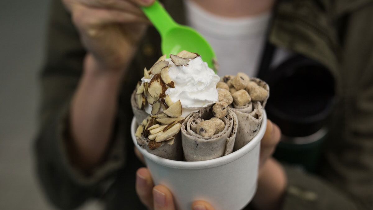 If you're here, it's to taste wild-style ice cream rolls kneaded with peanut butter cup or velvet Oreo, smothered in whipped cream and bits of even more stuff. Consider it a nouveau take on the froyo bowl for the architecturally inclined.