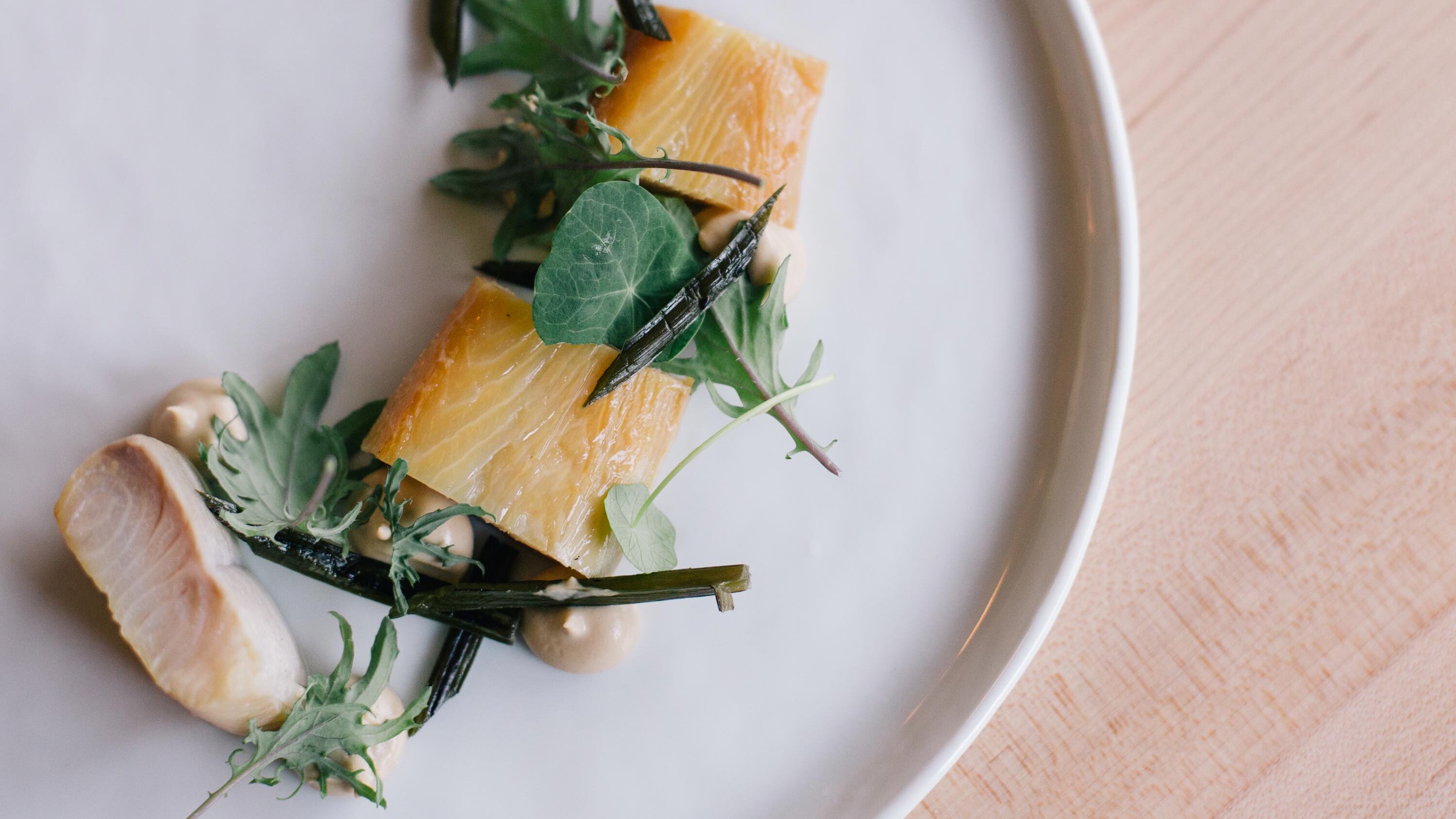 Jacqueline is the neighborhood seafood restaurant every Portland neighborhood wishes it had. A Mediterranean blue door opens to an always-bustling dining room full of quirky design, from the hand-painted sea life to the attention-getting portrait of Bill Murray as the oceanographer in The Life Aquatic With Steve Zissou. Chef-owner Derek Hanson's menus are equally free-wheeling and change daily. They're always defined by what's freshest—whether Oregon albacore or marigolds.