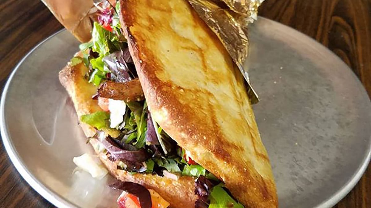 That would be the Pyro, a necronomic combo of pizza and gyro. It is a totally unique offering in the growing Portland pizzascape—essentially an entire pizza, folded in half and filled with toppings of your choice, alongside soy curls, greens and a tangy-sweet house sauce somewhere between balsamic gastrique and Mae Ploy sweet chili. It comfortably feeds two people, but it's really meant for personal consumption.