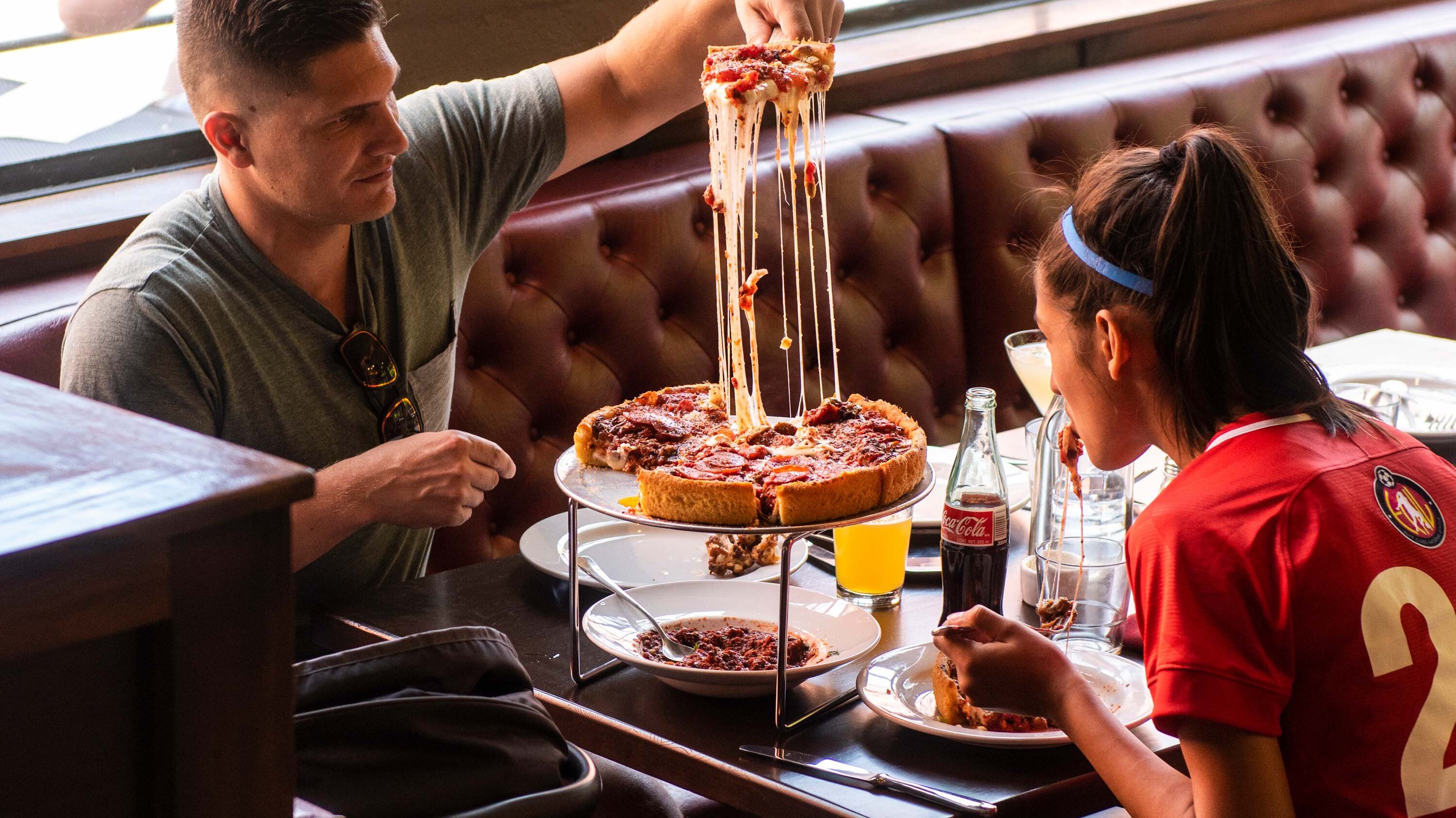 Both my server and a notice on the menu warned that pizza prep can stretch to 45 minutes with a full house—especially those deep dishes. Get your order started early and spring for an appetizer to help pass the time. The roasted broccolini ($8/$15) arrives like a tumble of tiny trees that have been blown over in a hurricane, and the delicious debris from that storm—clumps of Pecorino Romano, fresh garlic and chili flakes—are matted in the stalks' leaves. If you'd like something that's a little more of a project, the sourdough batard and roasted garlic ($6) is a finish-it-yourself loaf. Instead of already being baked on top of the bread, you control the application of a blend of butter and extra virgin olive oil as well as mild cloves so wonderfully caramelized, it's worth popping one into your mouth.