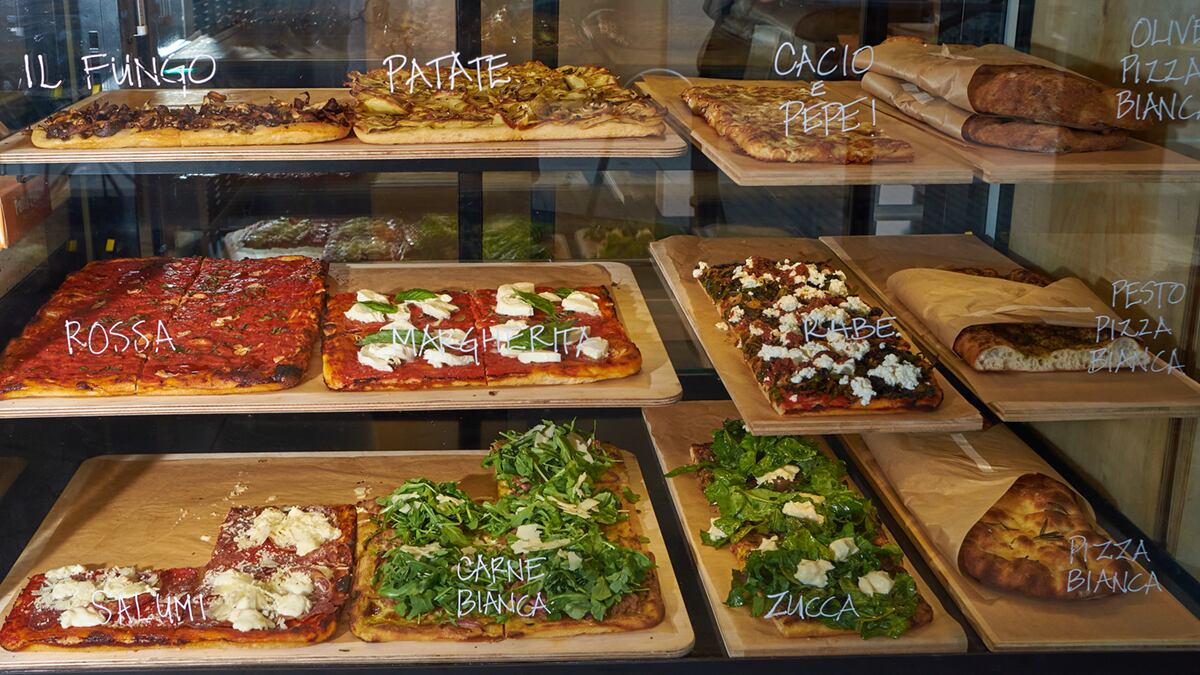 Both Schafer and Caporael say their favorite is the Pizza Rossa, which is brushed with marinara, slivered garlic and oregano, no cheese, though Caporael likes to add a hint of pecorino ($4). But you can also get a regular margherita ($5.50), the classic combination of potato and rosemary ($5.50) and several more elaborate options, including broccoli rabe with ricotta, roasted garlic and abruzzo sauce ($7) or salumi and capicola with marinara and stracchino cheese ($7.50).