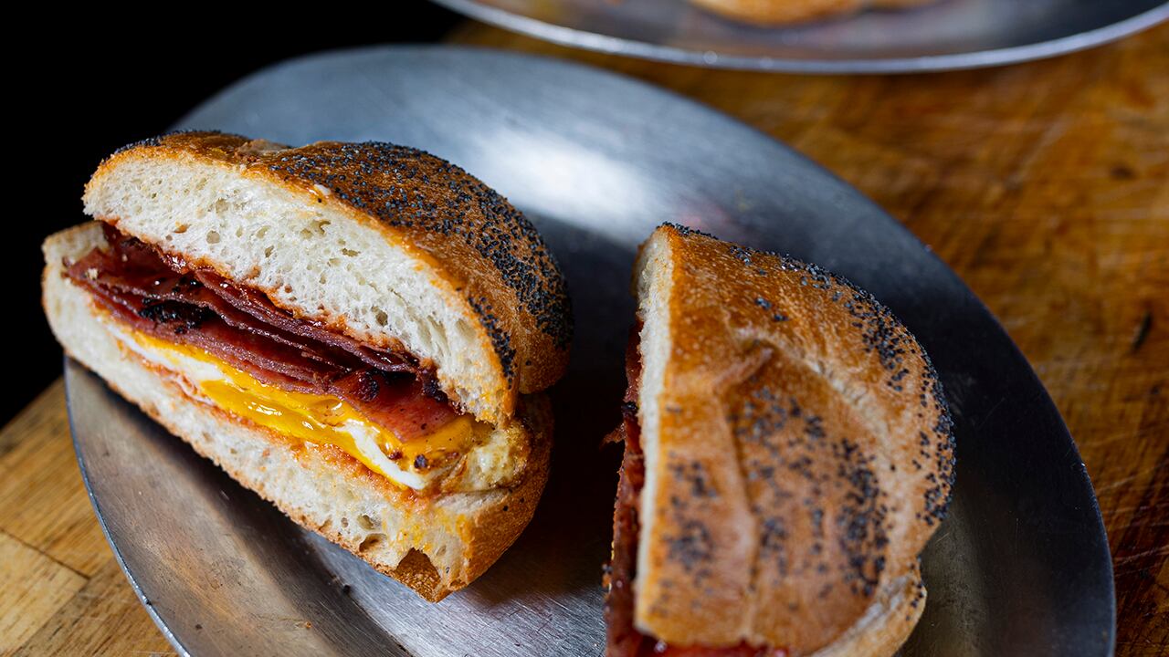 For his "Jersey Special," Miriello more actively sought authenticity and memory. To him, a proper pork roll, egg and cheese has to have a fried egg and Kraft American cheese. But most of all, you've got to have a proper East Coast hard roll—something softer than a baguette, but more resistant than a bun. Bunk Sandwiches, the home of Portland's OG bacon, egg and cheese, has long gotten its rolls from Fleur de Lis Bakery. At Dimo's, Miriello toyed with several options, including baking the rolls himself (too hard), shipping them from back East (no one took him seriously) or using Grano Bakery in Oregon City, which supplies Dimo's Apizza with its sesame baguettes (too artisan). Ultimately, Dos Hermanos, which, like Dimo's, is backed by the omnipresent ChefStable restaurant group, came up with a custom choice.