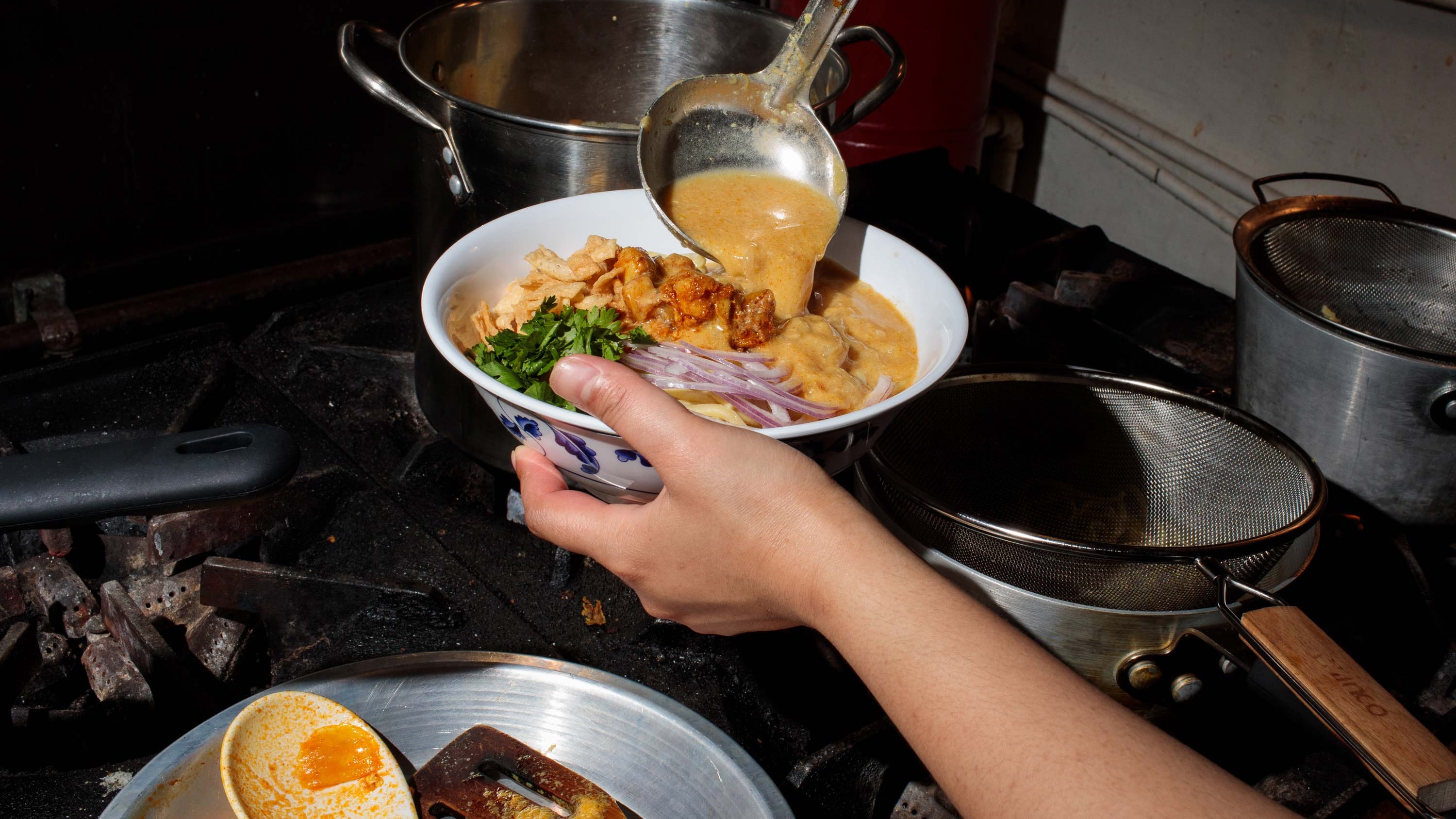 True to its name, much of the initial menu is noodle dishes: There’s Kyay Oh rice noodles served as either salad or soup, garlic noodles (topped with garlic oil and fried garlic), and Punn Thay Noodles. The last is described as “the crossroad of where Burmese, Chinese and Indian cultures meet,” a sizzling union of five spice, wheat noodles, cabbage and tomatoes.