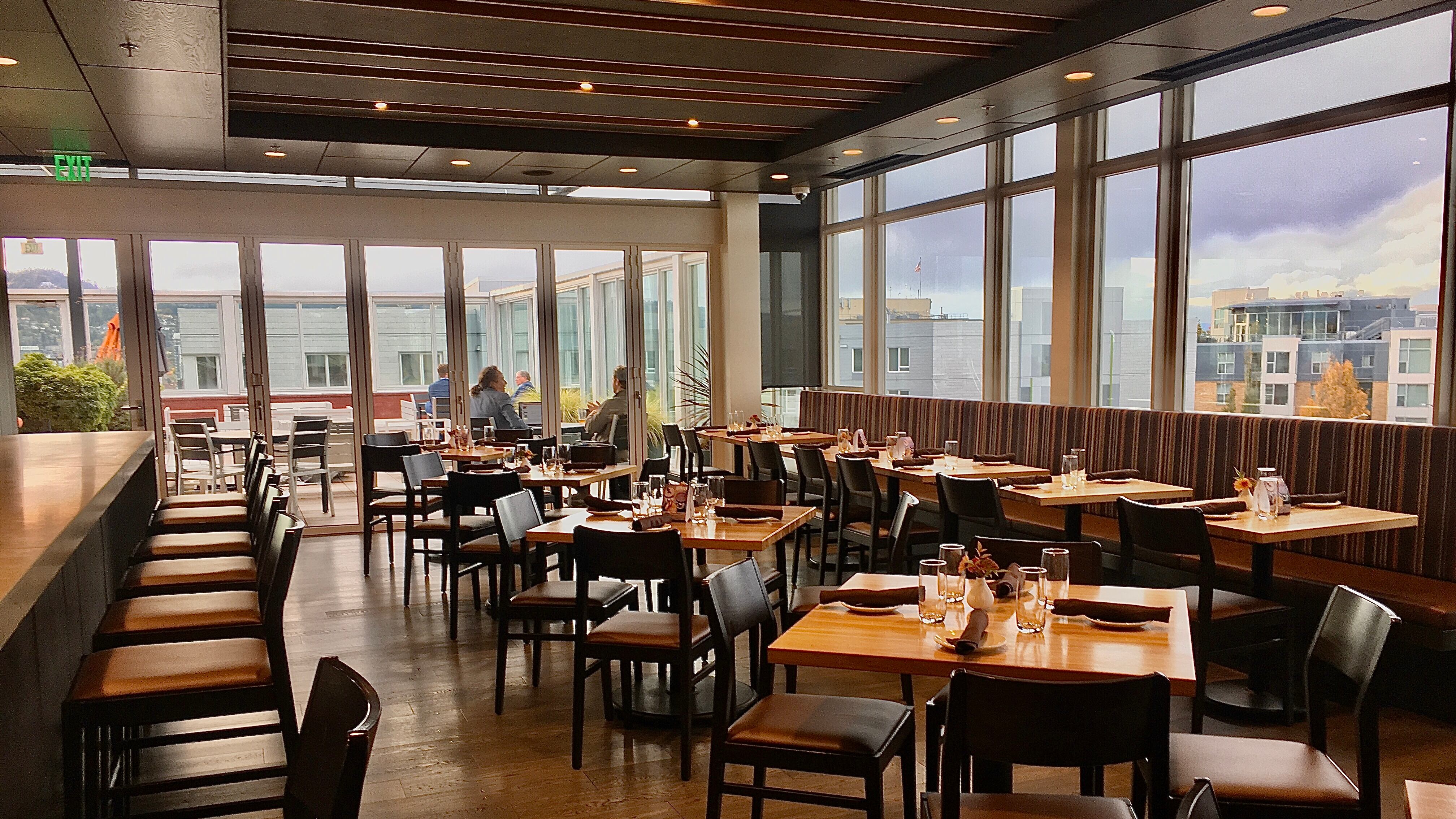 The restaurant, for now, looks largely the same—the rectangular bar with 16 taps occupies the center of the room, surrounded by four-top hardwood tables and long banquettes. The marvelous windows still stretch from the floor to the ceiling, providing stellar views of the Oregon Convention Center’s spires, downtown high-rises and the West Hills.