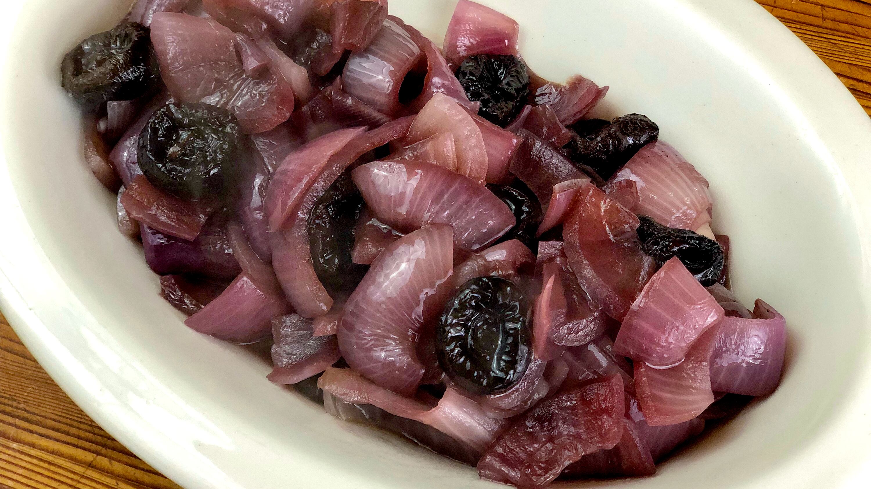 Onions Braised in Red Wine with Prunes