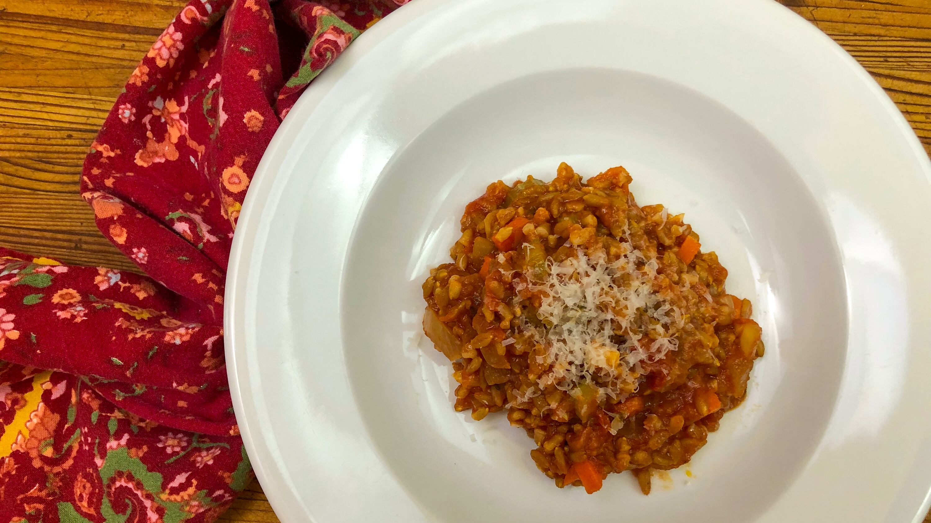 In Italian all’uccelletto means “in the style of little birds,” and it’s most often stuck onto a dish of beans in tomato sauce called fagioli all’uccelletto. Some people argue that sage must be also involved, but a lot of old recipes don’t mention it. Emmer farro is an ancient wheat that is still grown in northern Italy, but it’s typically pearled to remove the outer husk. If a recipe says the farro will cook in 15 minutes, that’s using what the Italians call farro perlato or pearled. Emmer farro grows here in the Pacific Northwest, and it’s almost always whole grain with the husk intact. You get more nutrients, but the grain takes longer to cook.