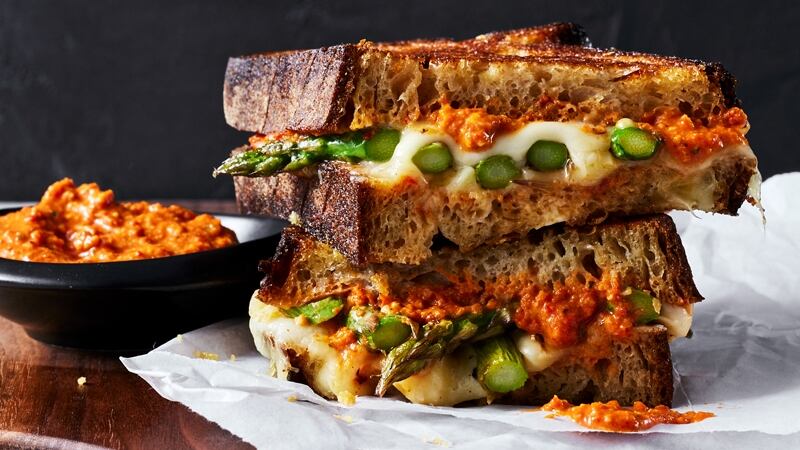 The saucy grilled cheese with asparagus, perfect for spring, seems to have two secrets. I’m already a fan of the mayo trick—spreading it on the outside of the bread. But tell me about mixing mayonnaise with butter.