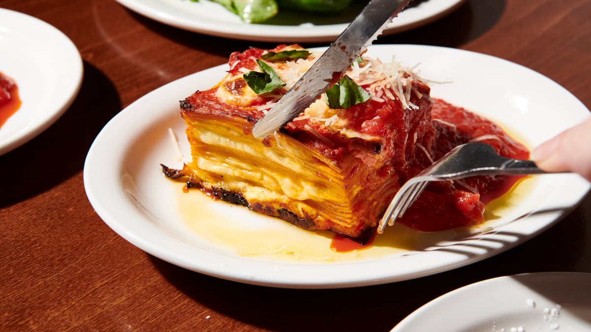 Though best known for its Detroit-style pies, East Glisan makes room on its menu for lasagna every Sunday, and the pasta is just as hefty as the shop’s square pizzas. With 12 lustrous layers, each slice is as thick as a brick and feels sturdy enough to construct a wall. The whisper-thin noodles are every bit as important as the creamy ricotta and crushed DiNapoli San Marzano-style tomatoes since there are no fillings like meat or spinach. This is filling food. This is comforting food. This is “slow down and pay attention” food.