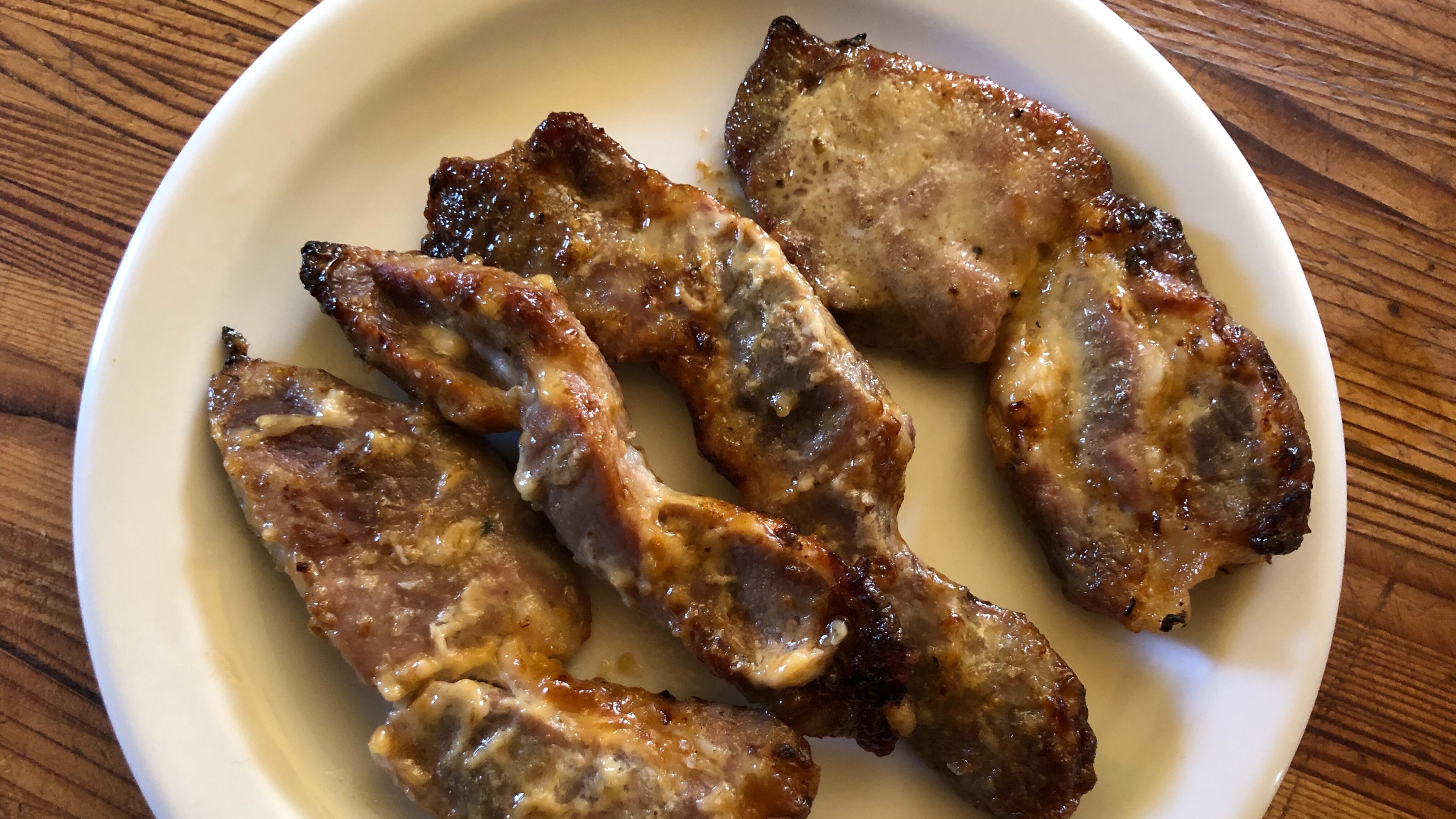 Heat your oven to 400 degrees and brush both sides of the pork with the sauce. Set a rack over a skillet or sheet pan and arrange the pork so the pieces aren’t touching. Cook for 15 minutes, then brush each piece of pork with more sauce, flip them over, and brush the other side. Pop it back in the oven, reduce the heat to 250 degrees, and cook for another 15 minutes.
