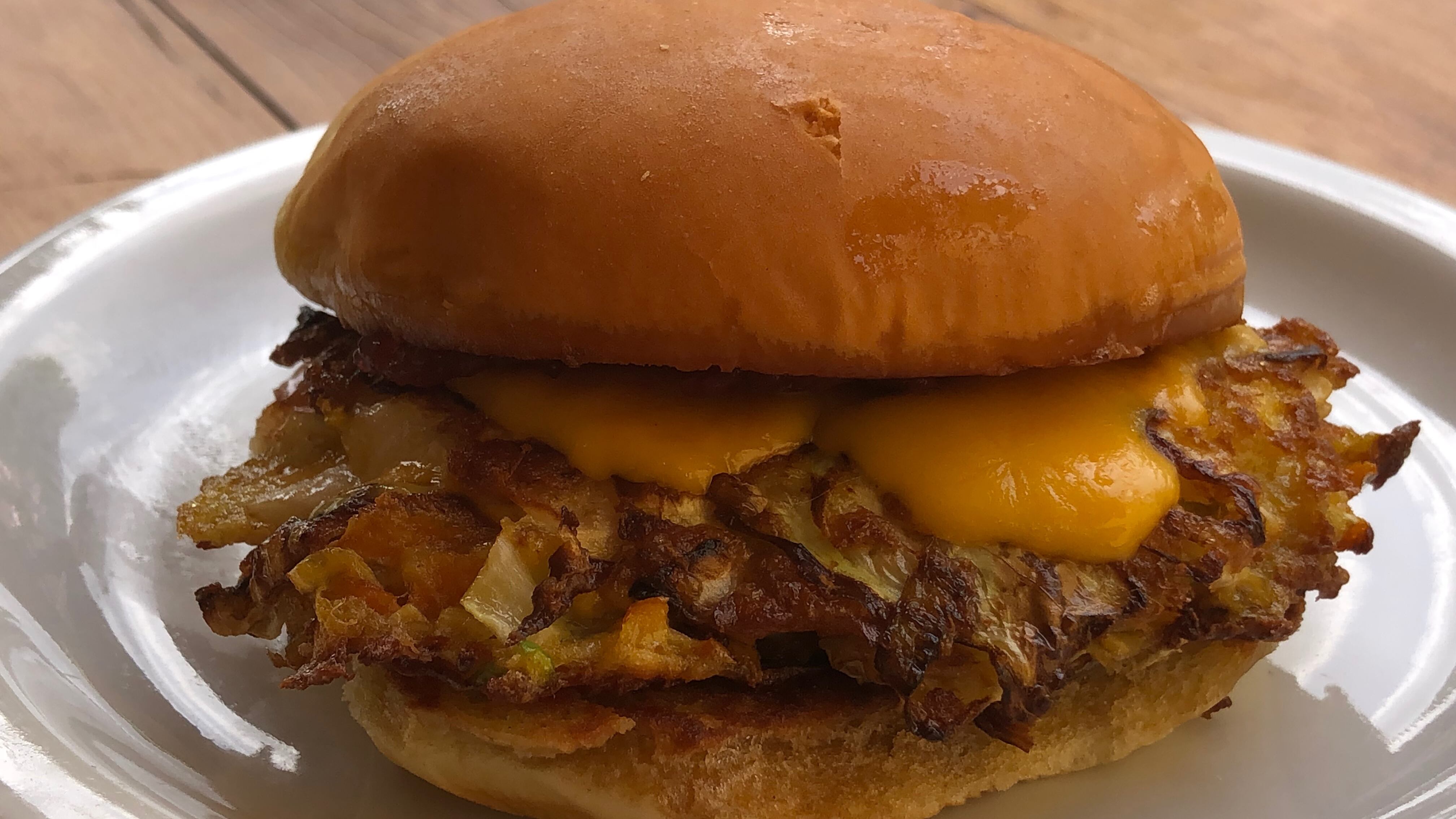 Cook for about 4 minutes or until the egg has set and the bottom is lightly browned. Carefully flip and cook the other side, adding a slice of cheese to each fritter. If you’re going with the ham, brown the slices briefly in the skillet with the buns.