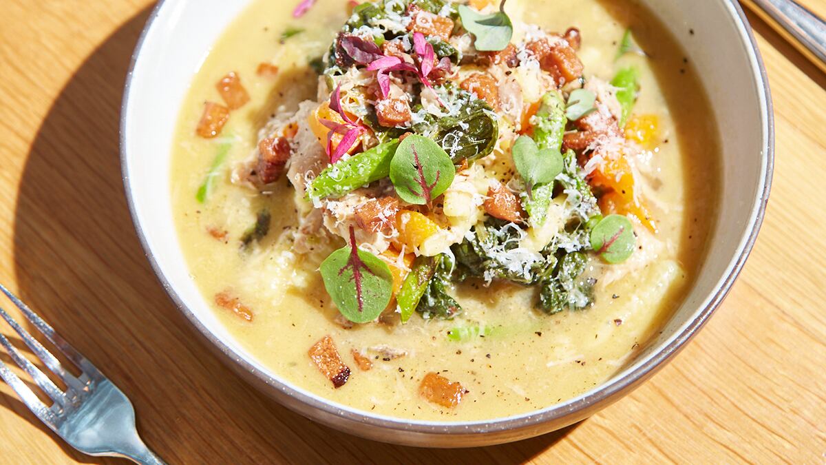 Bluto’s, named after John Belushi’s hard-partying character in Animal House, comes from Lardo and Grassa mastermind Rick Gencarelli and the ChefStable restaurant group. Like Lardo and Grassa, it aims for that fancy, fast-casual niche, with counter service and midrange prices belying some seriously tasty cooking. Bluto’s portion sizes are perfect for sharing, so covering a table in a variety of dishes and allowing the flavors to mingle is the right way to eat here. The zippy citrus and sour labneh in the chicory salad should be eaten in between bites of the savory skewers and hummus scooped up with pita bread.