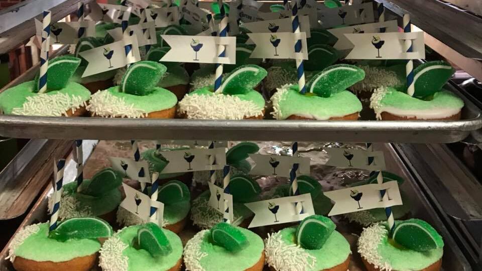 The lime-dusted, white-sprinkled doughnuts are topped with both vanilla frosting and a tequila-and-lemon jelly—those sugary sprinkles are apparently meant to evoke the salt rim on a margarita, though they really just look a lot like sprinkles on a lemon-lime doughnut, charmingly outfitted with a lime-shaped candy and a straw should you like to slurp the tequila jelly.