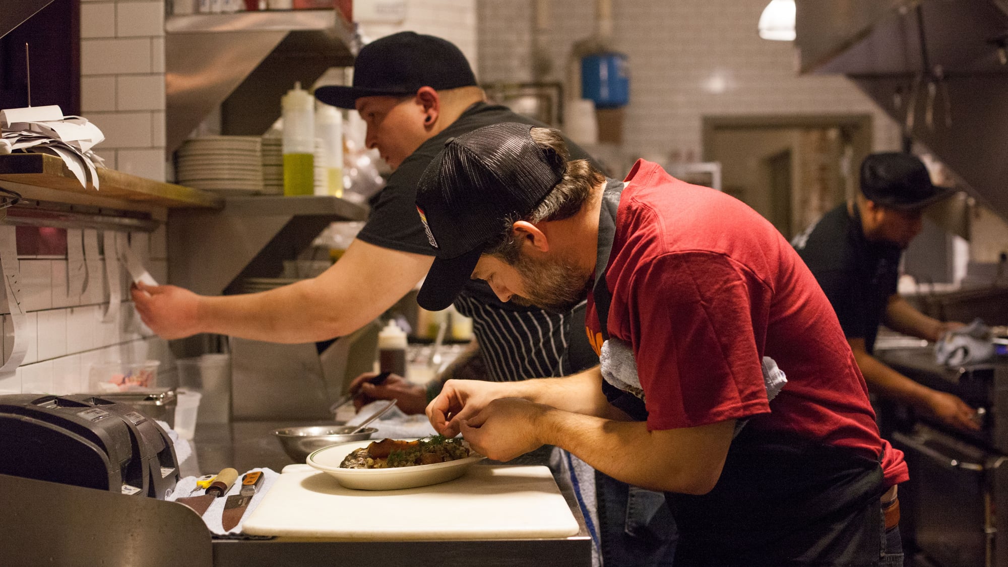 Adams spent the summer fishing—literally—before Woodsman owner Duane Sorenson talked him into temporarily taking over his Division Street clubhouse. The Woodsman's previous chef, who had not been informed of the Stumptown founder's plan in advance, shuffled off to the Buckman Public House, and Adams set about putting his stamp on this once-great tavern, which had fallen from culinary relevance and made up for it by hanging TVs showing football games.