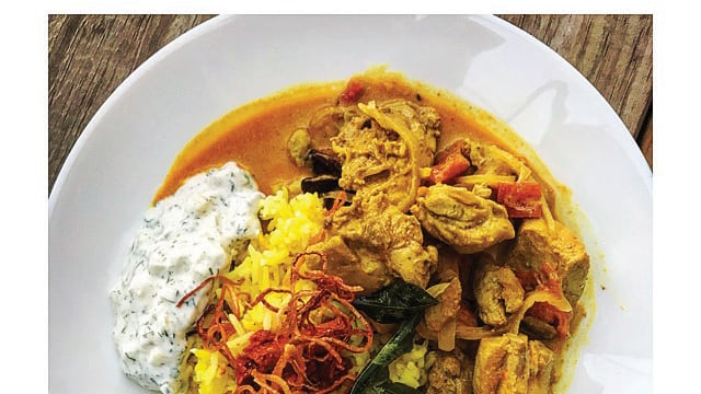 It's also the flavor of Kaul's Kashmiri-American childhood, one he hopes to bring to a full-service restaurant. Two other Kashmiri-style entrees make use of asafetida's depth and funk, including a Kashmiri-style rogan josh lamb dish ($15) that tastes like a Christmas-spiced curry—a world of clove, coriander, cinnamon and cardamom along with a light kiss of Kashmiri chili. But the most bracing flavor comes from the beautifully fermenty dollop of yogurt on each plate. The Kashmiri eggplant and tomato stew ($11 rice bowl, $3 side) dives instead into fennel and ginger for a round warmth and light buzzing on the tongue.