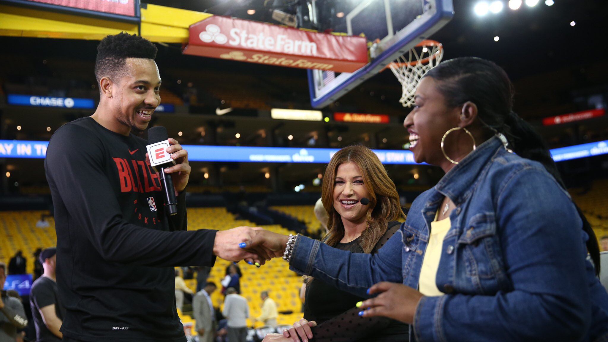Williams was a guest on ESPN's pre-show before the start of Game 2 between the Blazers and Warriors, leading to this historic moment: