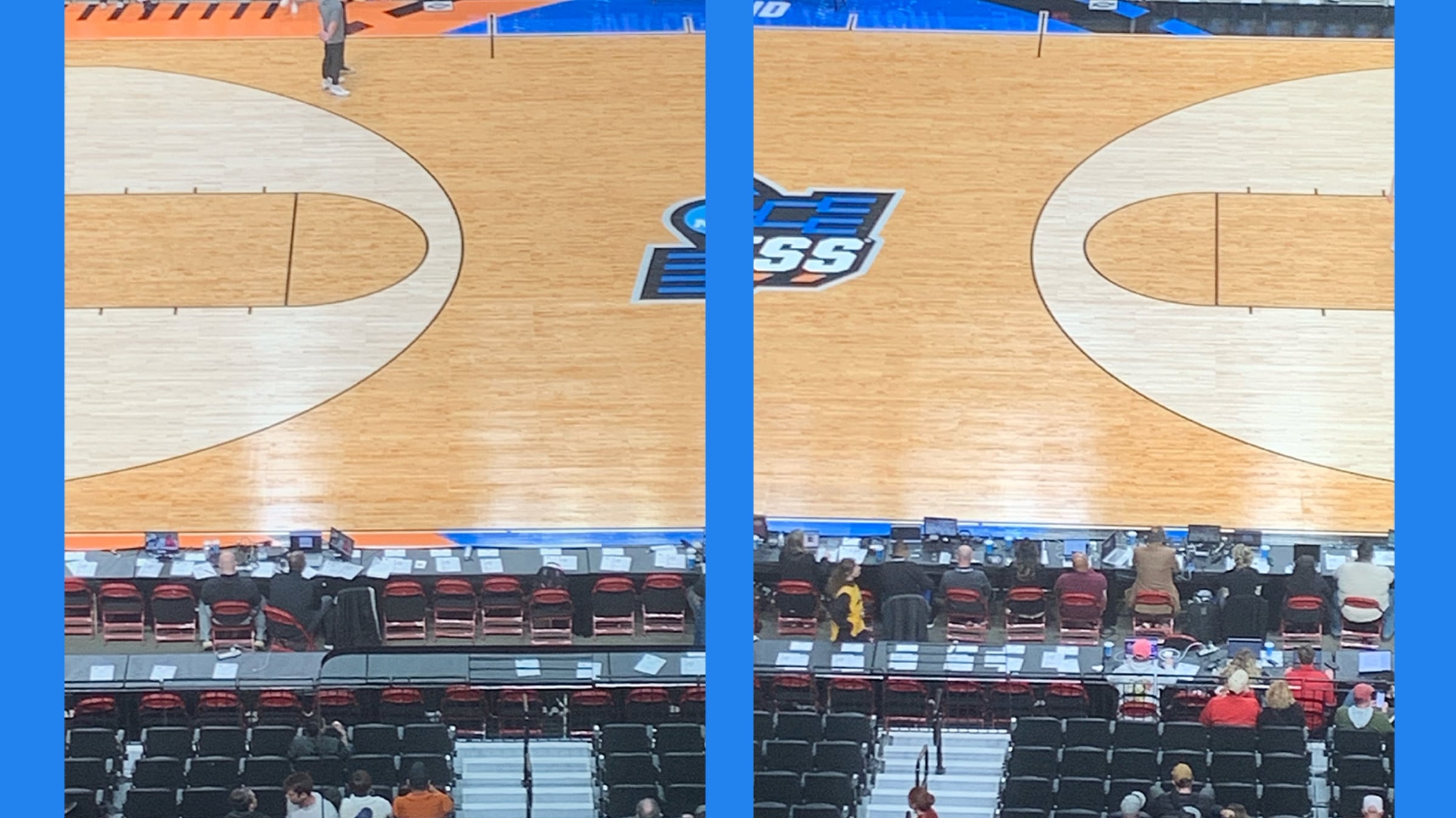 No. I’m sure the NCAA isn’t happy that I pointed this out. I can’t imagine if it was a men’s game—people’s heads would explode. Or a close game? That’s what I was worried about, is what if it ends up being a 3-point game? Too bad for them.