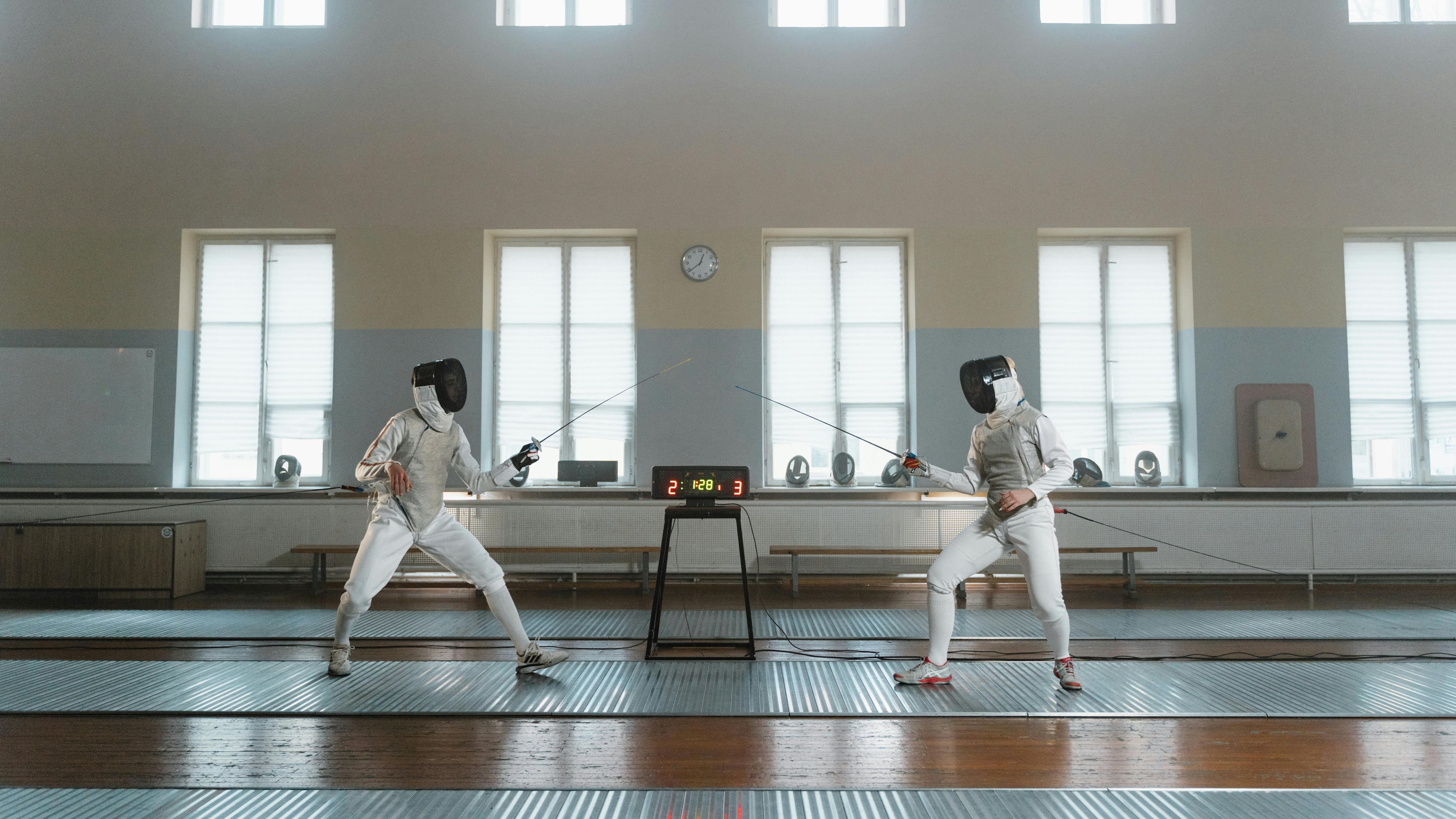 Challenge level: 2/3. Fencing requires split-second decision making and intricate footwork.