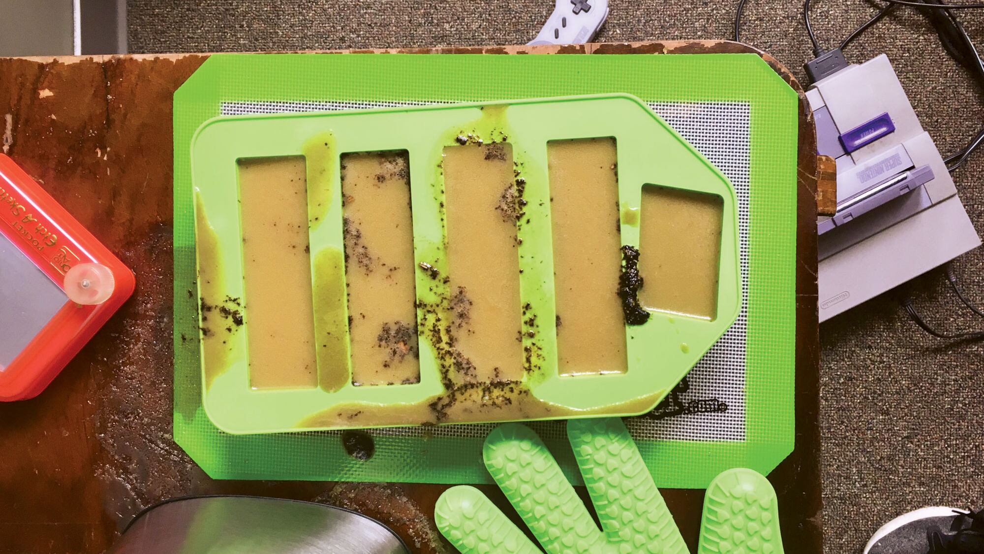 While it doesn't emit any intense smells, make sure to place it somewhere away from people, as a blending noise comes on every few minutes. After the two hours, we opened the machine to some gooey, brown syrup and poured the mixture into a rubber cookie tray shaped like sticks of butter (sold separately) and let it sit. It will harden in a few hours, but you'll need to refrigerate it to really get the butter consistency.
